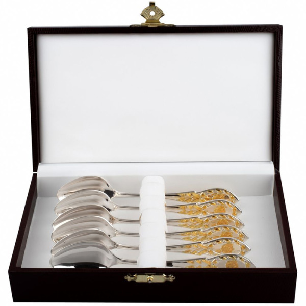 Набор кофейных ложек из серебра с золочением "Государственный Герб РФ" на 6 персон