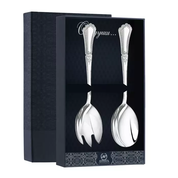 Серебряный набор для салата "Фаворит": ложка, вилка для салата