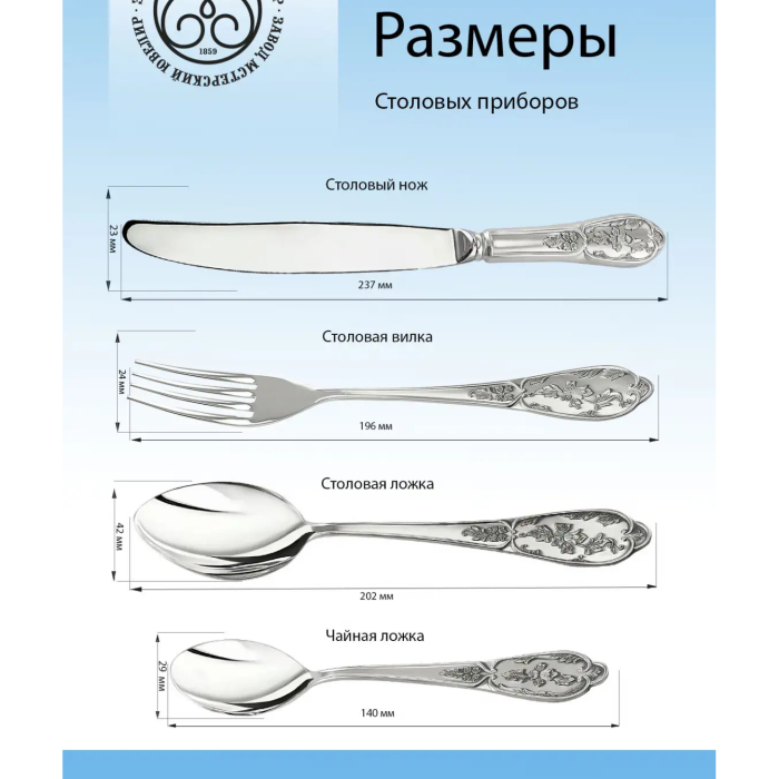 Кольчугинский Мельхиор – предприятие с более чем вековой историей. Летопись уникального для России производства мельхиоровых изделий с нанесением серебра началась в XIX веке на знаменитом заводе в городе Кольчугино Владимирской области. Фирменное клеймо с глухарём стало синонимом качества и вековых традиций. Посуда покрывается слоем чистого серебра 999,9 пробы толщиной в 24 микрона. Эта технология зафиксирована в ГОСТ и строго соблюдается на предприятии.