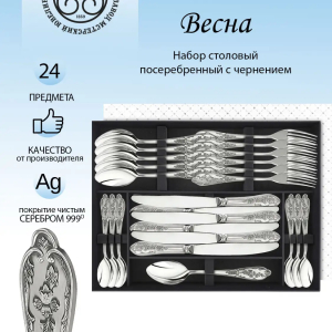 Посеребренный столовый набор из мельхиора "Весна" на 6 персон