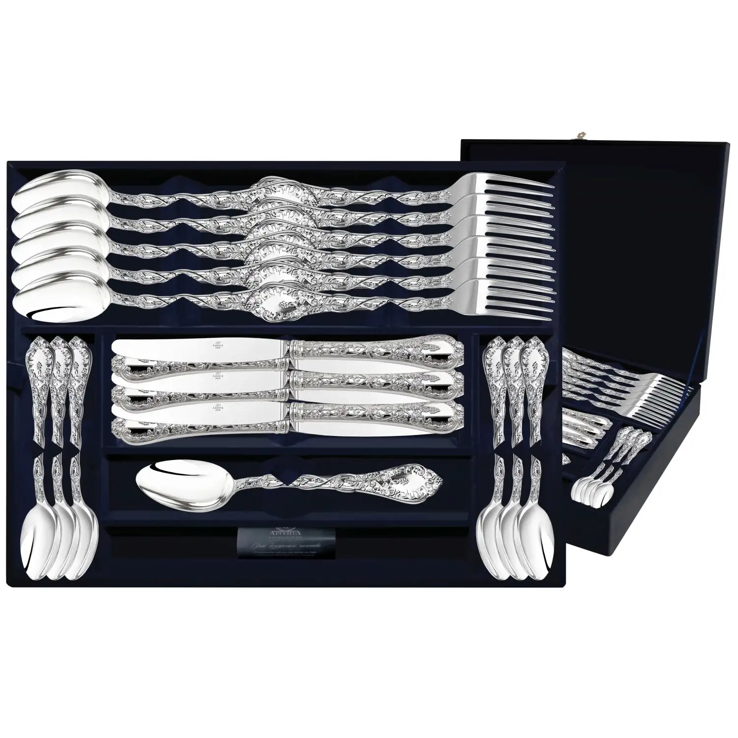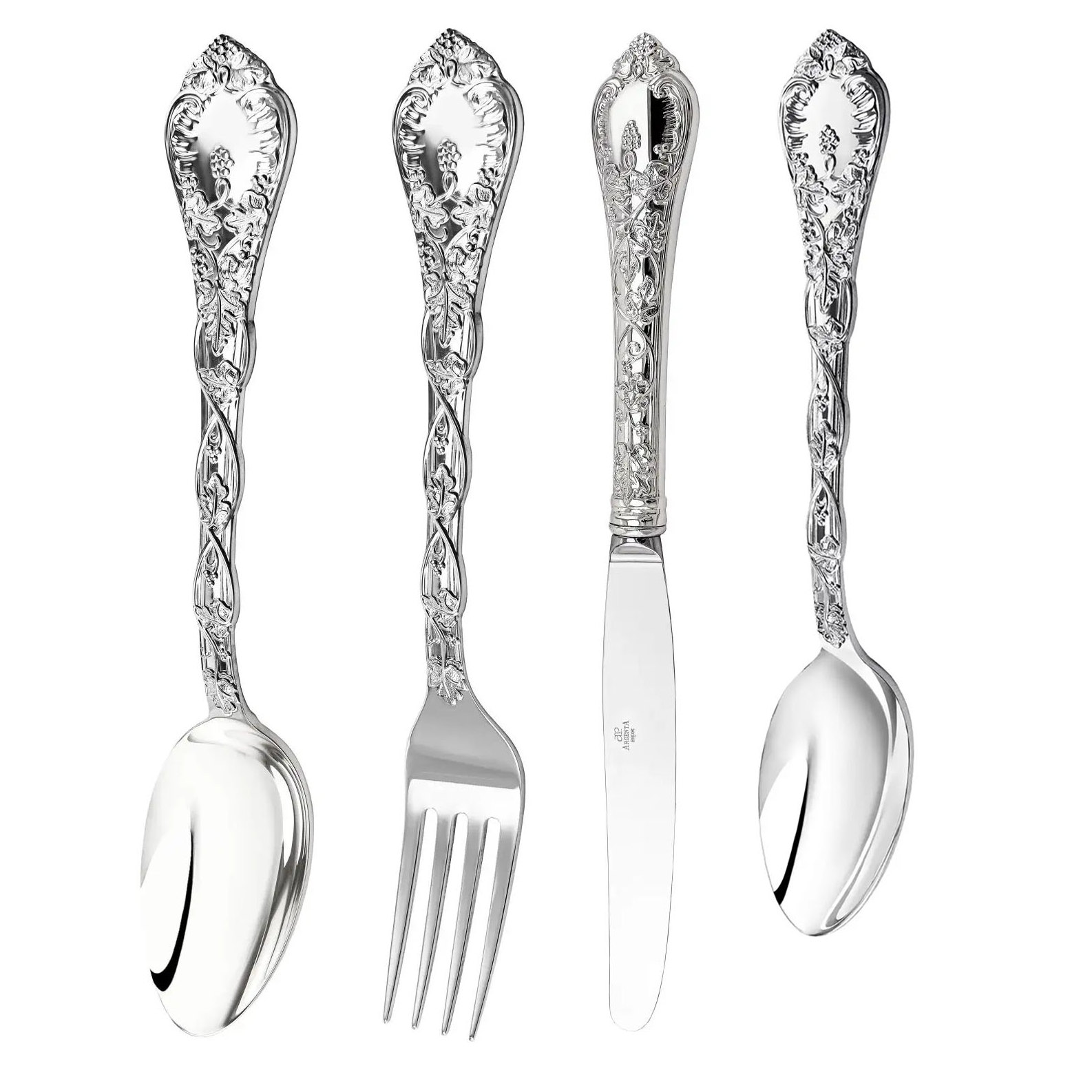 Посеребренный столовый набор "Виноградная лоза": вилка, ложка, нож, чайная ложка, на 12 персон, 48 предметов