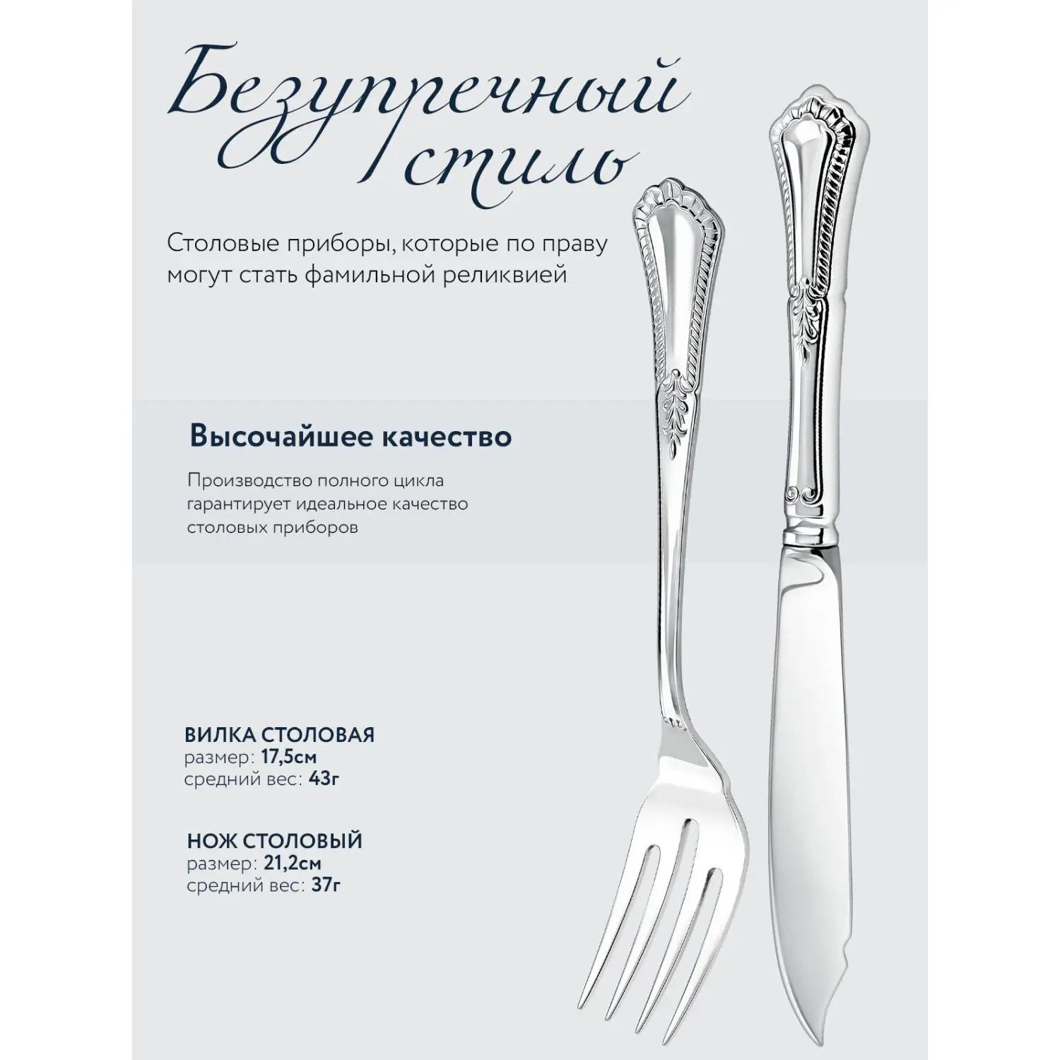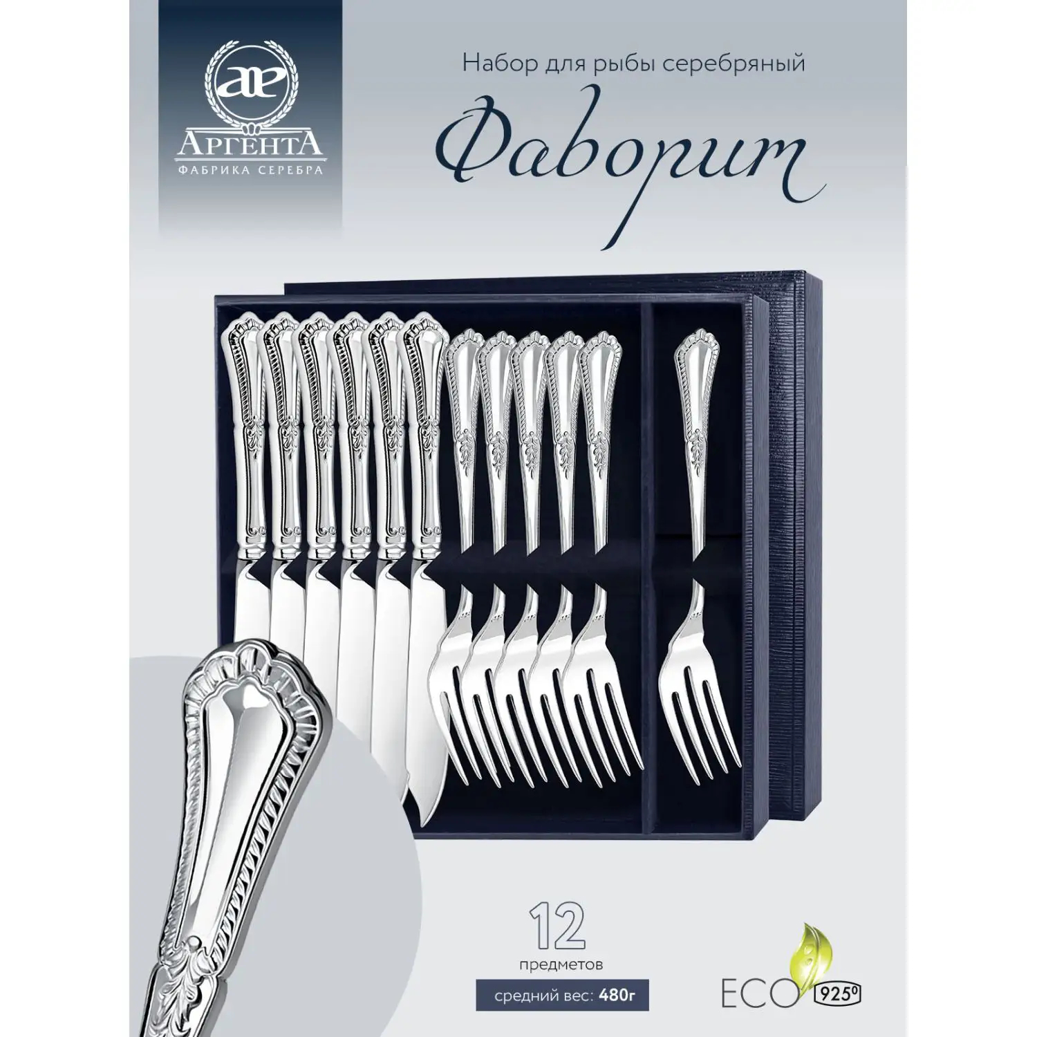 Серебряный набор для рыбы "Фаворит": вилка, нож, на 6 персон, 12 предметов
