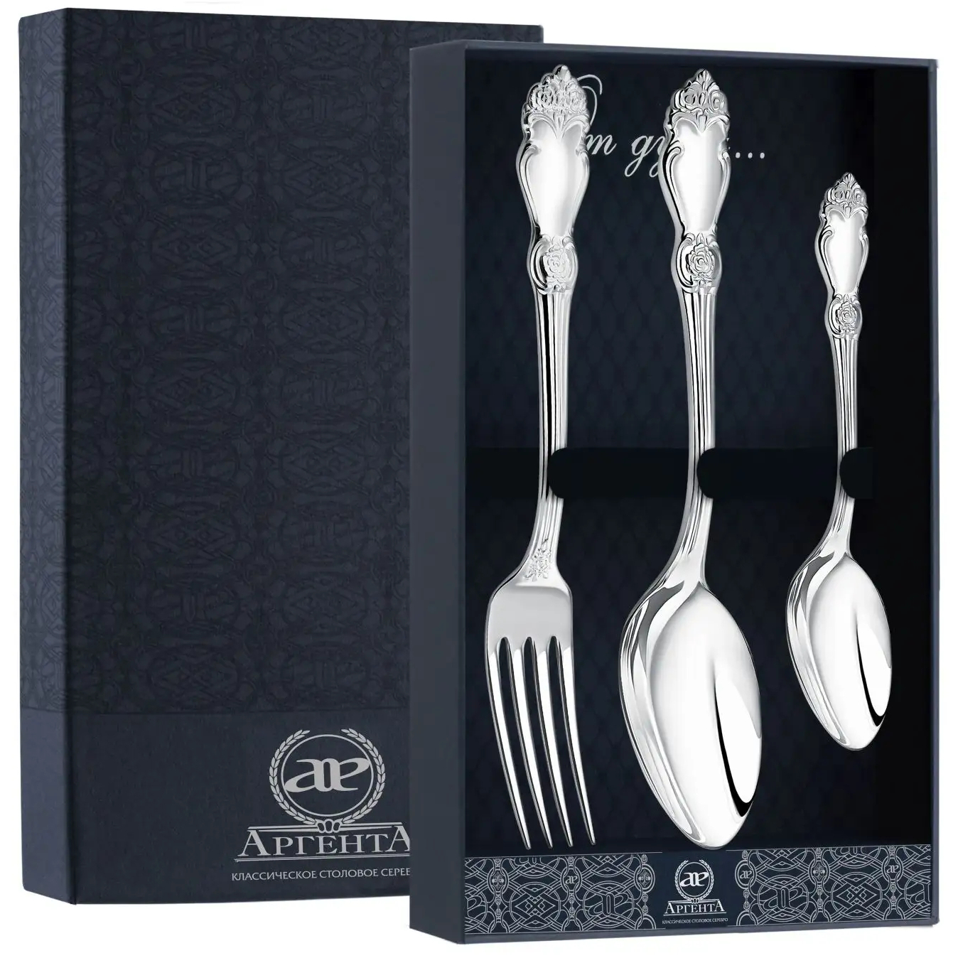 Серебряный столовый набор "Серебряная роза": вилка, ложка, чайная ложка, на 1 персону