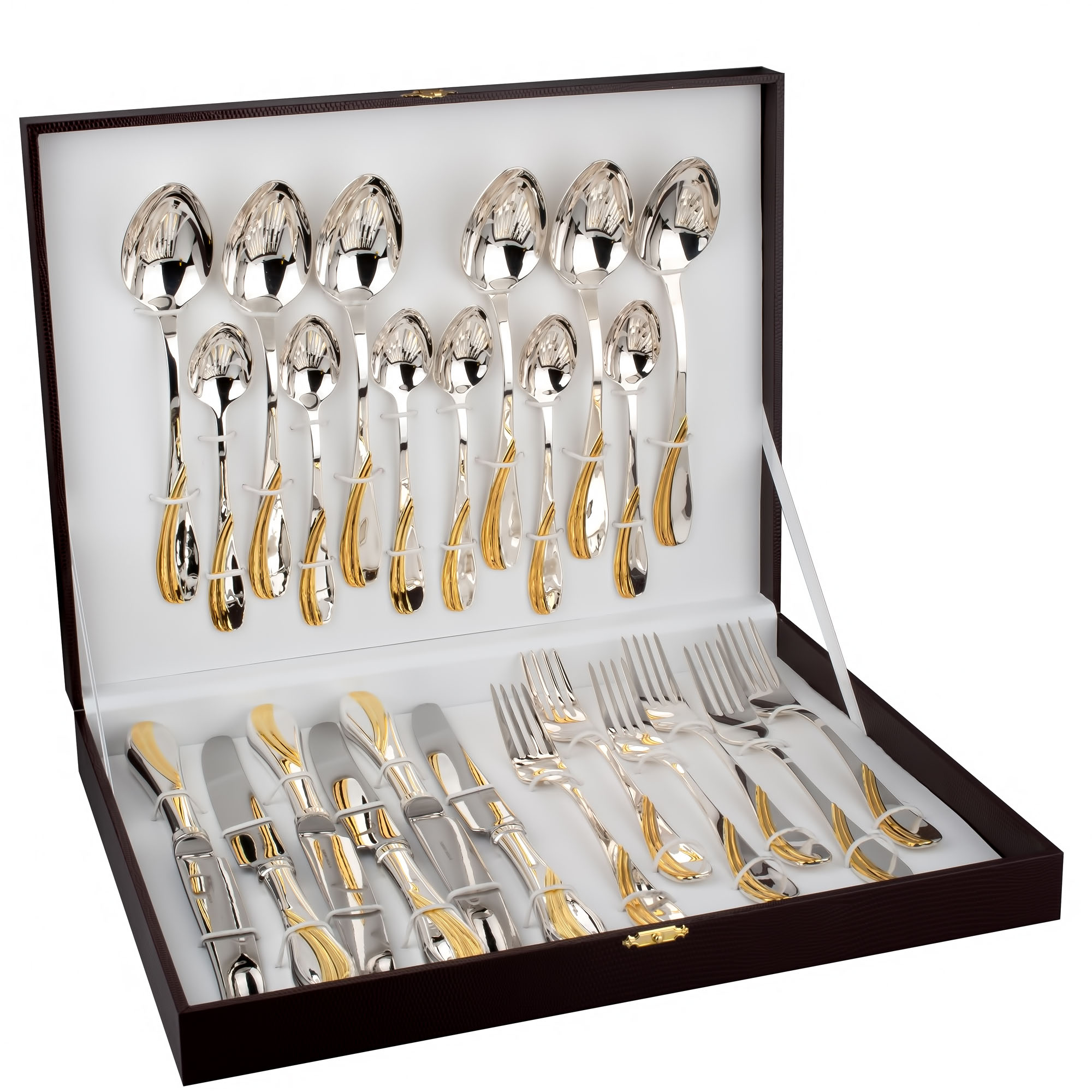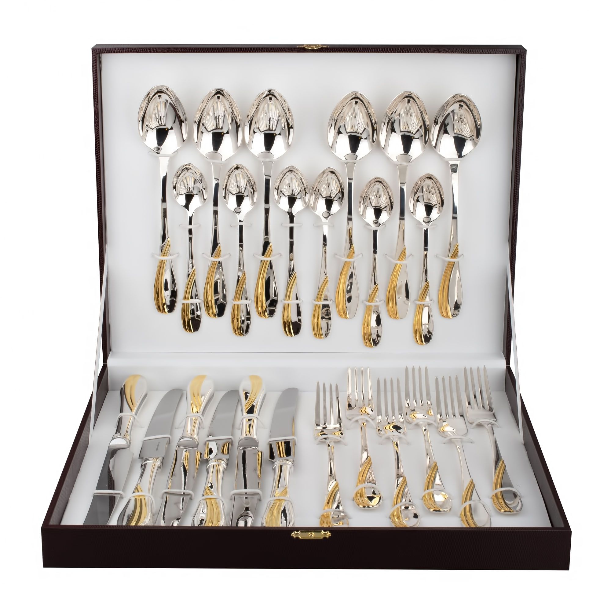 Столовый десертный набор из серебра с золочением "Изящный" 24 предмета, на 6 персон