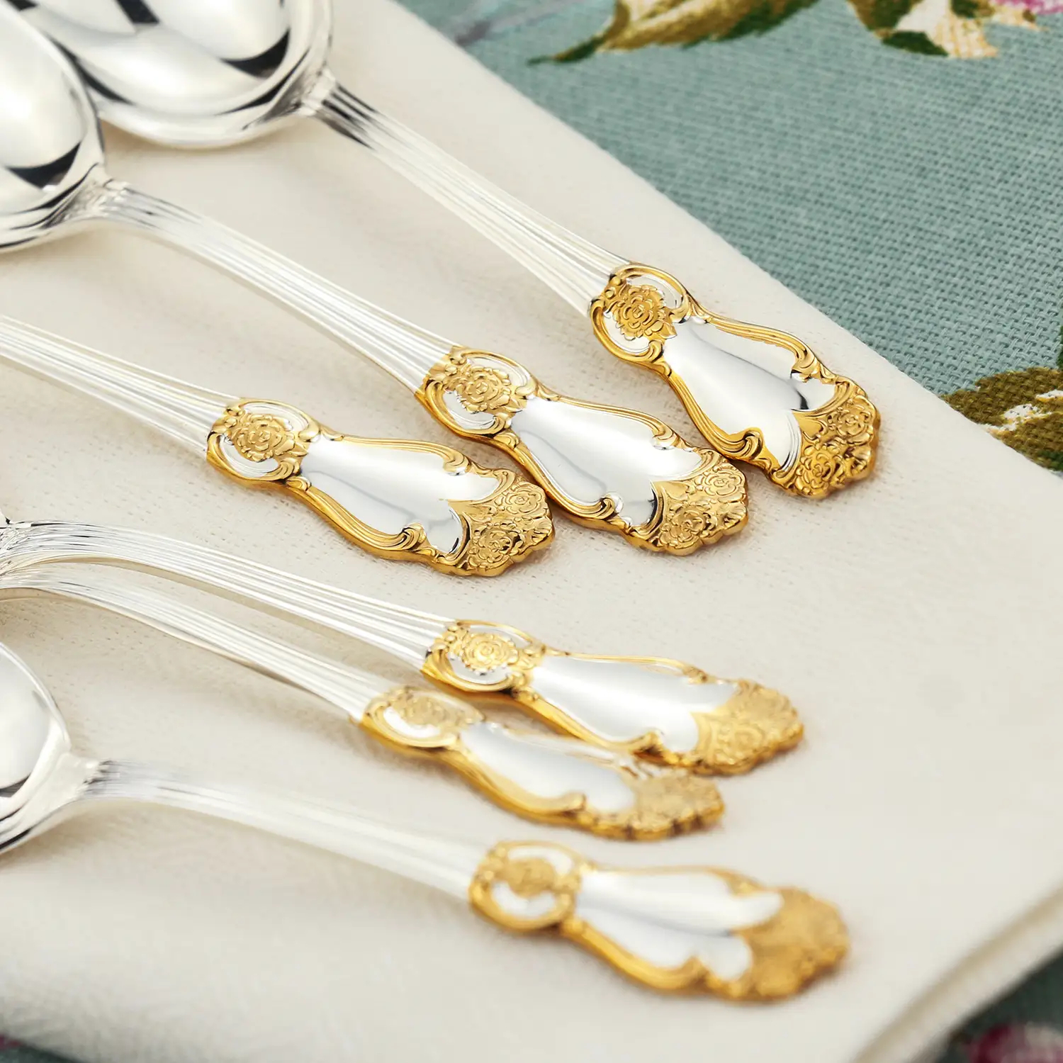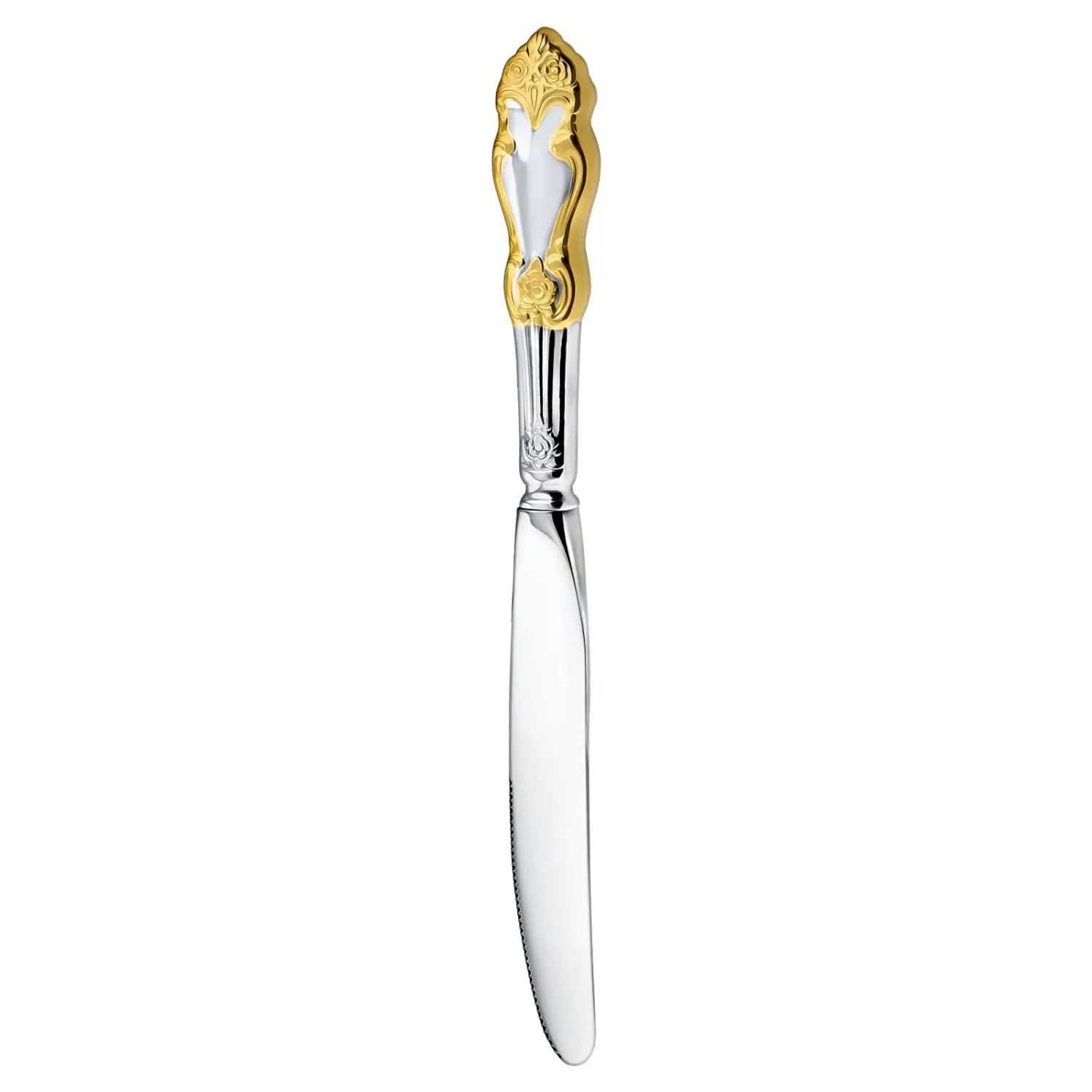 1. Нож десертный "Серебряная роза" позолоченный рисунок - 6шт. (средний вес 6 х 80 гр. = 480 гр.)