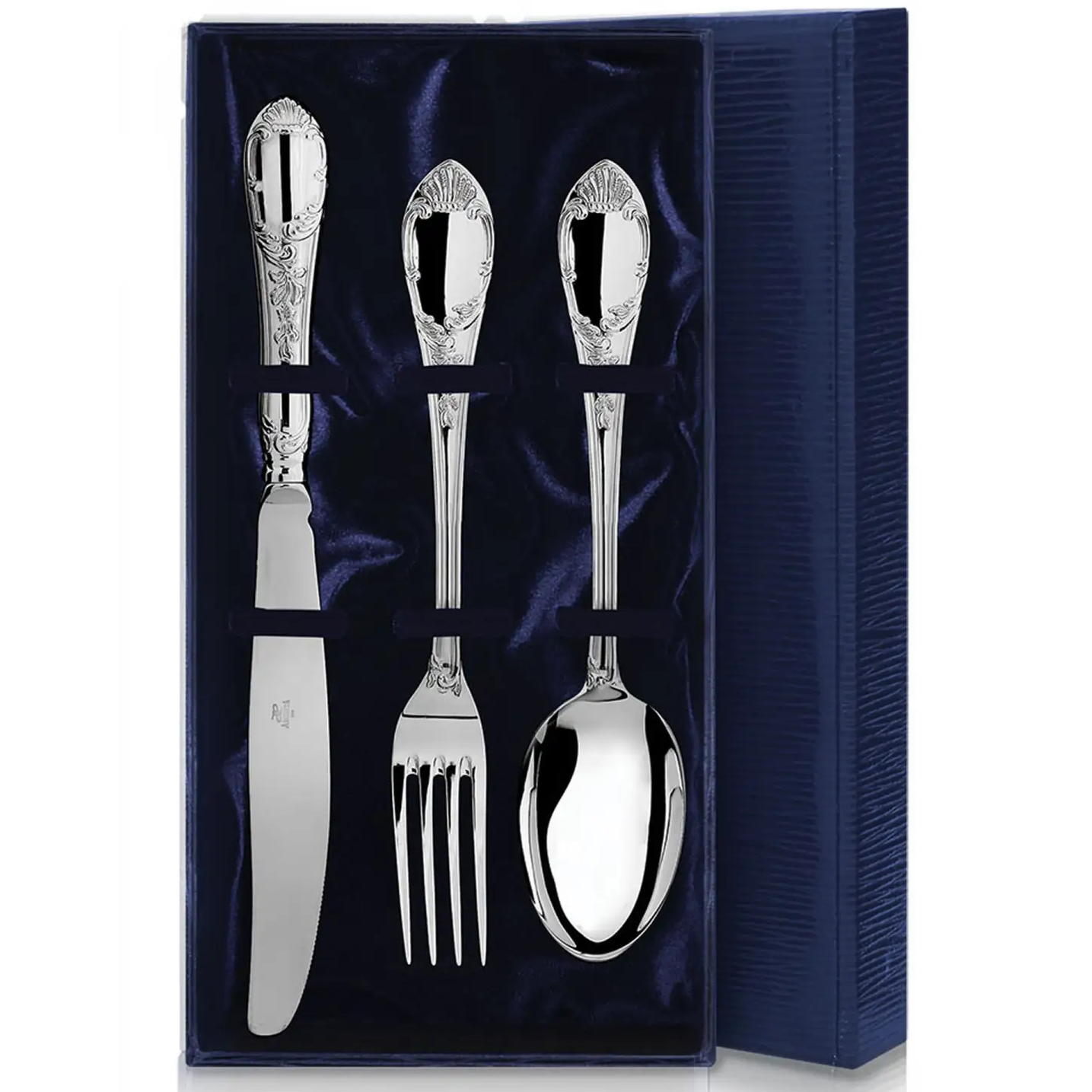 Комплектация:столовый нож, столовая вилка, столовая ложка, футляр.