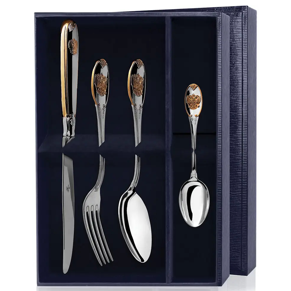Набор из 4 столовых серебряных приборов "Единство" с позолотой, на 1 персону