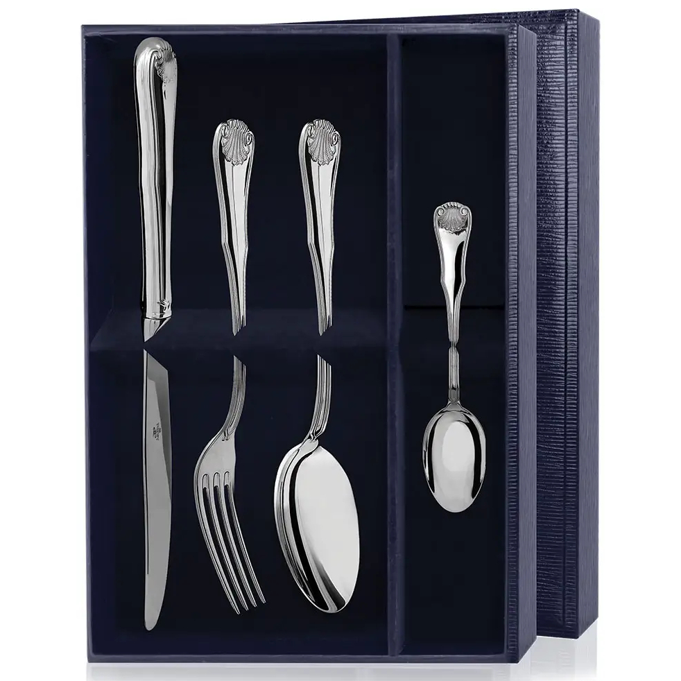 Набор из 4 столовых серебряных приборов "Элегант": вилка, ложка, нож, чайная ложка, на 1 персону