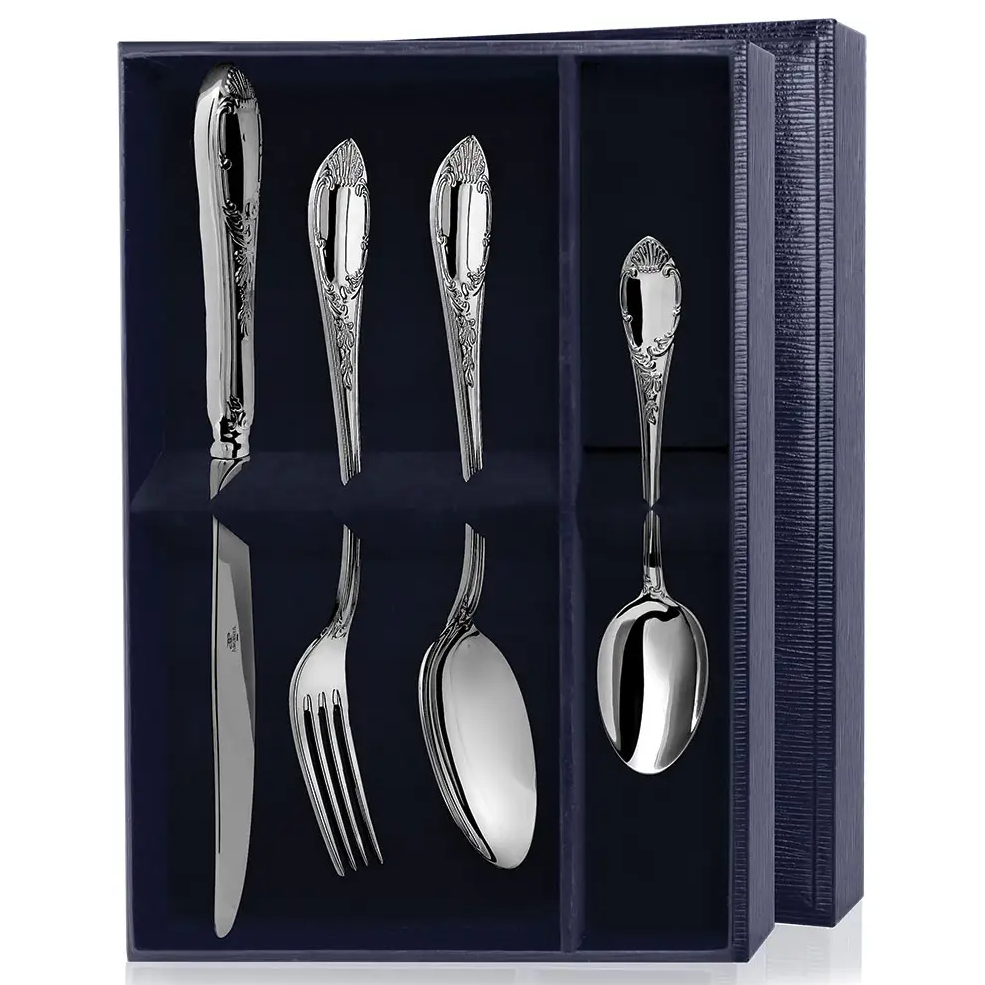 Набор из 4 столовых серебряных приборов "Престиж": вилка, ложка, нож, чайная ложка, на 1 персону
