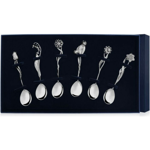 Набор серебряных чайных ложек "Цветы России" на 6 персон