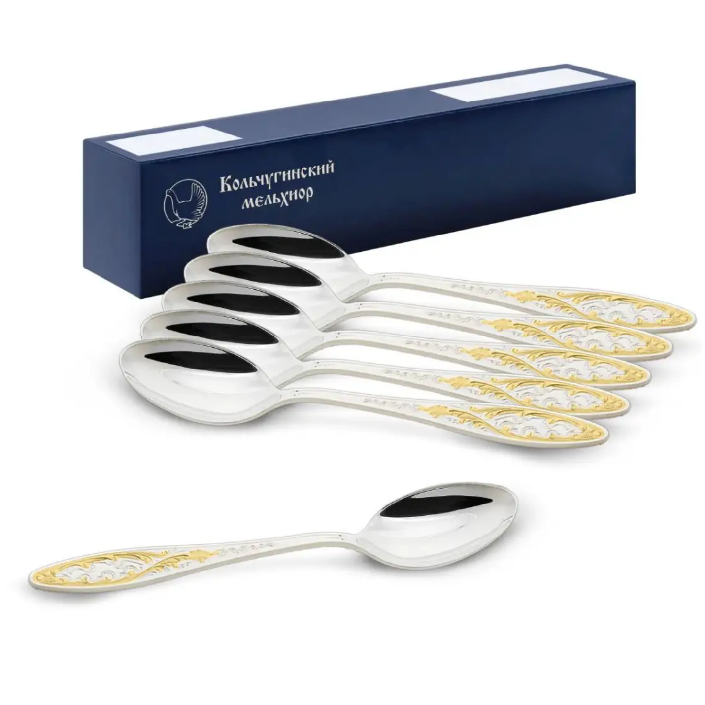 Набор столовых ложек "Морозко" посеребренный с позолотой, на 6 персон