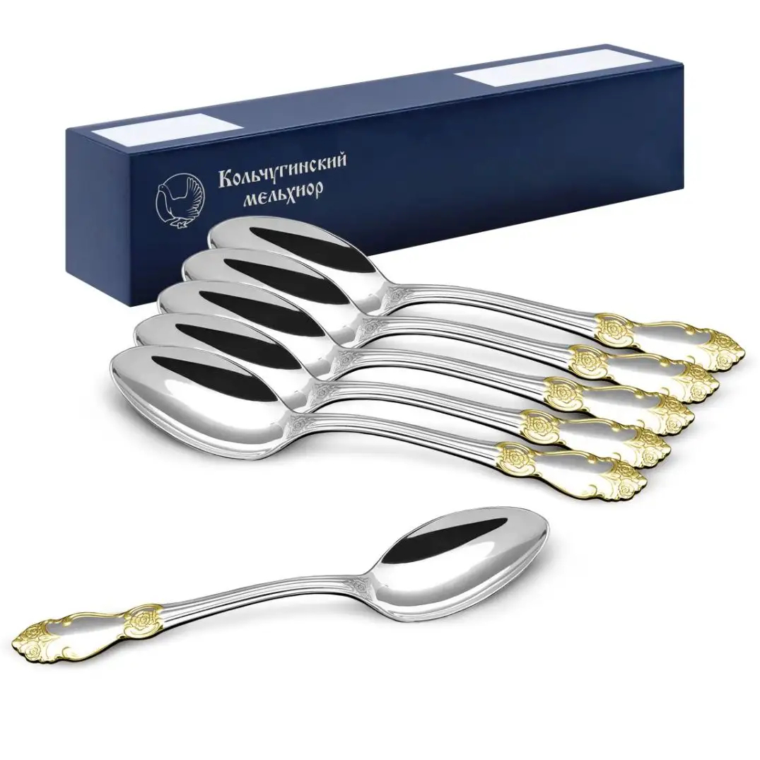 Набор столовых ложек "Серебряная роза" посеребренный с позолотой, на 6 персон