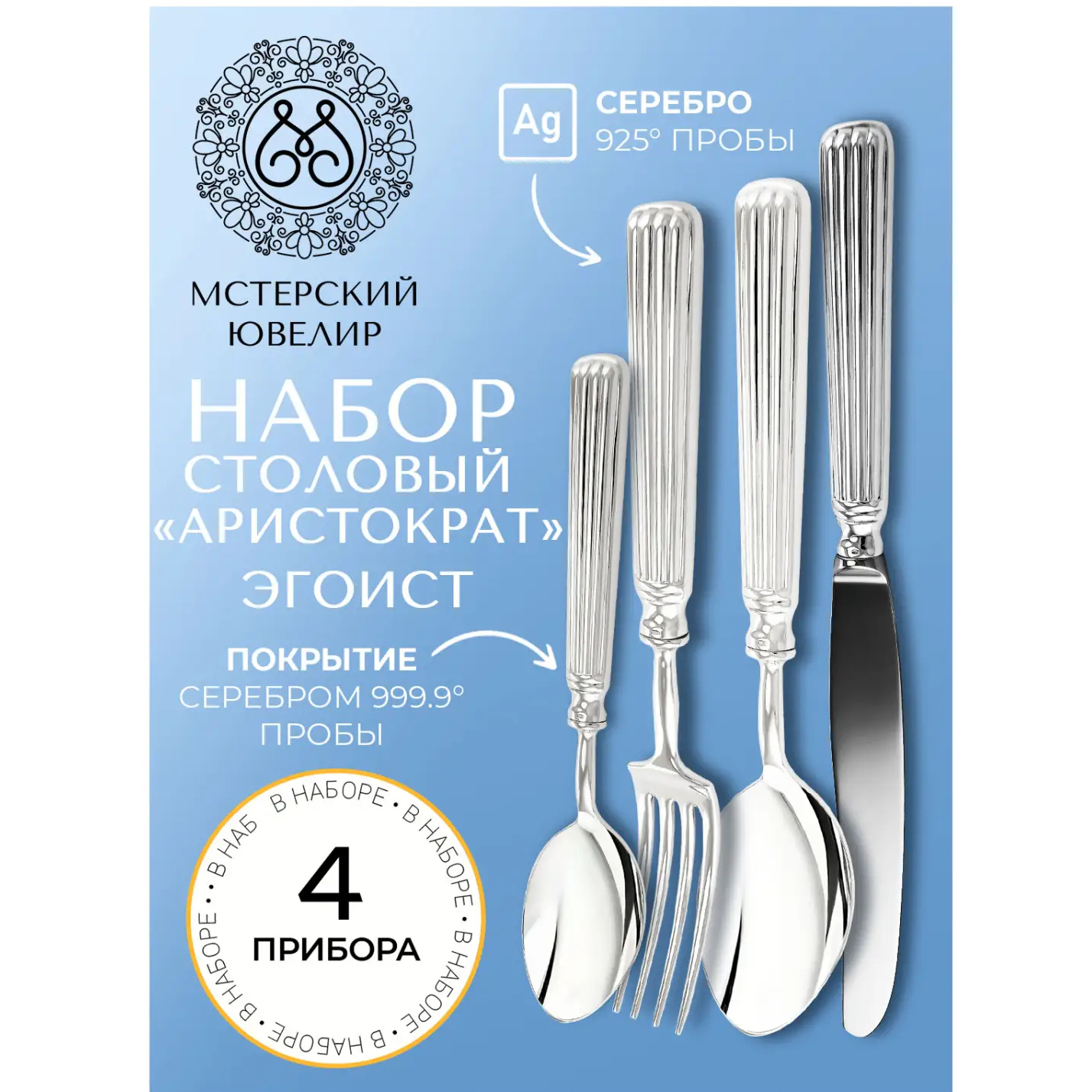 Набор столовых приборов из серебра "Аристократ. Эгоист": 4 предмета, на 1 персону