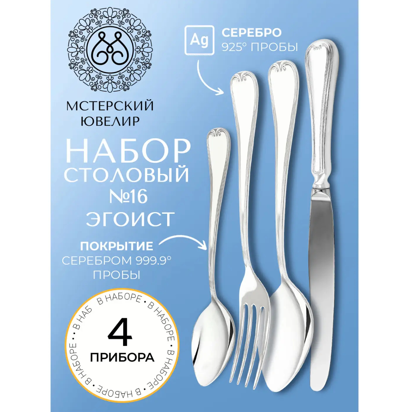 Набор столовых приборов из серебра "№16. Эгоист": 4 предмета, на 1 персону