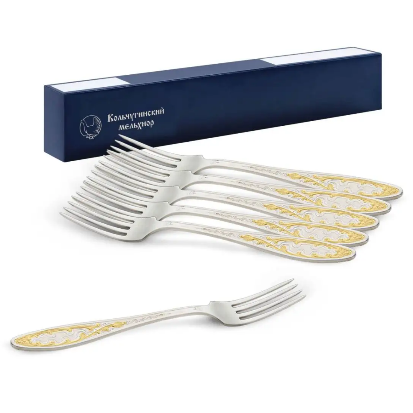Набор столовых вилок "Морозко" посеребренный с позолотой, на 6 персон