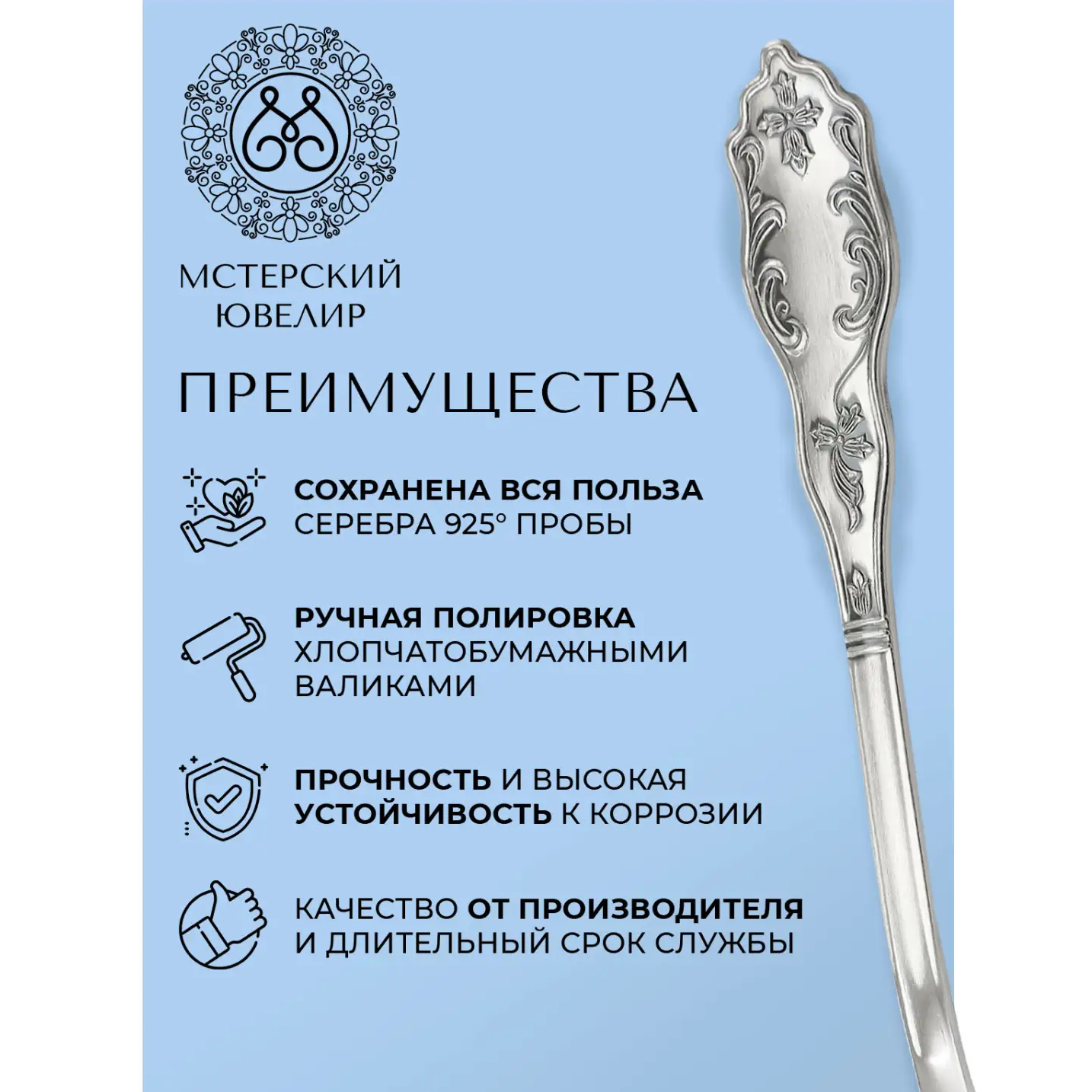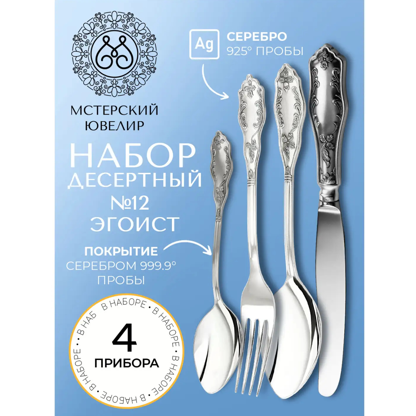 Набор столовых приборов из серебра "№12. Эгоист": 4 предмета, на 1 персону