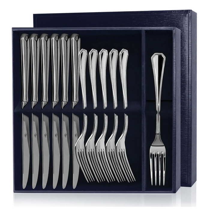 АргентаСеребряный столовый набор "Визит": вилка и нож, на 6 персонСеребряный столовый набор "Визит": вилка и нож, на 6 персонКоллекция классического столового серебра - это союз многовековых традиций и современных технологий, эстетичных форм и эргономичного дизайна. Все предметы коллекции созданы, чтобы стать заветными семейными ценностями и передаваться из поколения в поколения. Стильные и полезные, серебряные столовые приборы помогают победить негативное воздействие внешней среды и укрепляют иммунитет всей семьи день за днём. Классическая коллекция состоит из нескольких линий классического столового серебра: Фаворит, Император, Престиж, Визит, Русский, Единство, Элегант, Морозко, Фамильный. В каждой линии предусмотрены разные варианты для покупки. Вы можете приобрести любое изделие отдельно или набор на одну или несколько персон. Для больших семейств и крупных застолий - наборы из 24, 48, 51 и более предметов. Все изделия коллекции Classic являются неотъемлемой частью сервировки как праздничного, так и повседневного стола.