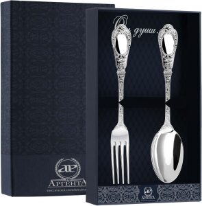 АргентаСеребряный столовый набор "Престиж": вилка и ложка , на 6 персонСеребряный столовый набор "Престиж": вилка и ложка , на 6 персонСтоловое серебро – привилегия избранных, признак аристократизма и роскоши. Сияние драгоценного металла отражает изысканный вкус хозяина, облагораживает не только праздничный стол, но и весь окружающий интерьер.