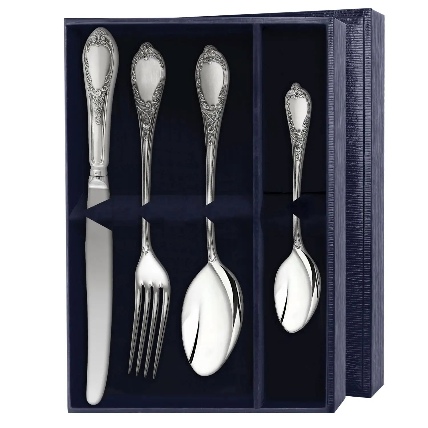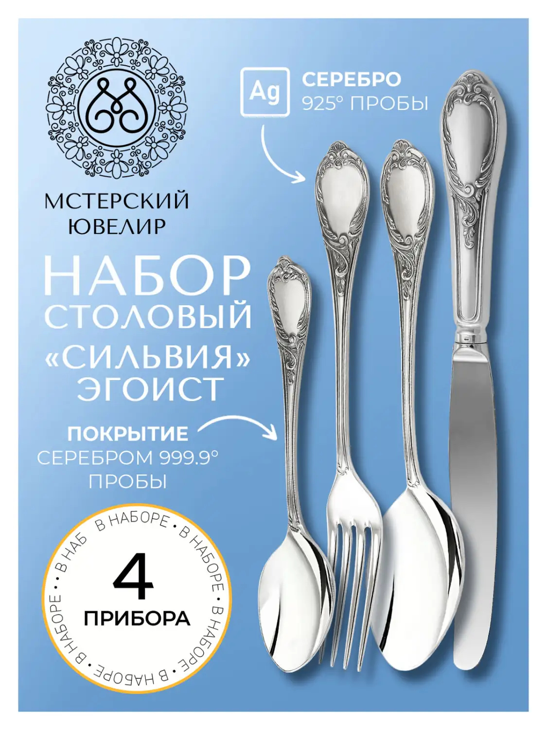 Столовый набор из серебра "Сильвия-Эгоист ": вилка, ложка, нож, чайная ложка, на 1 персону