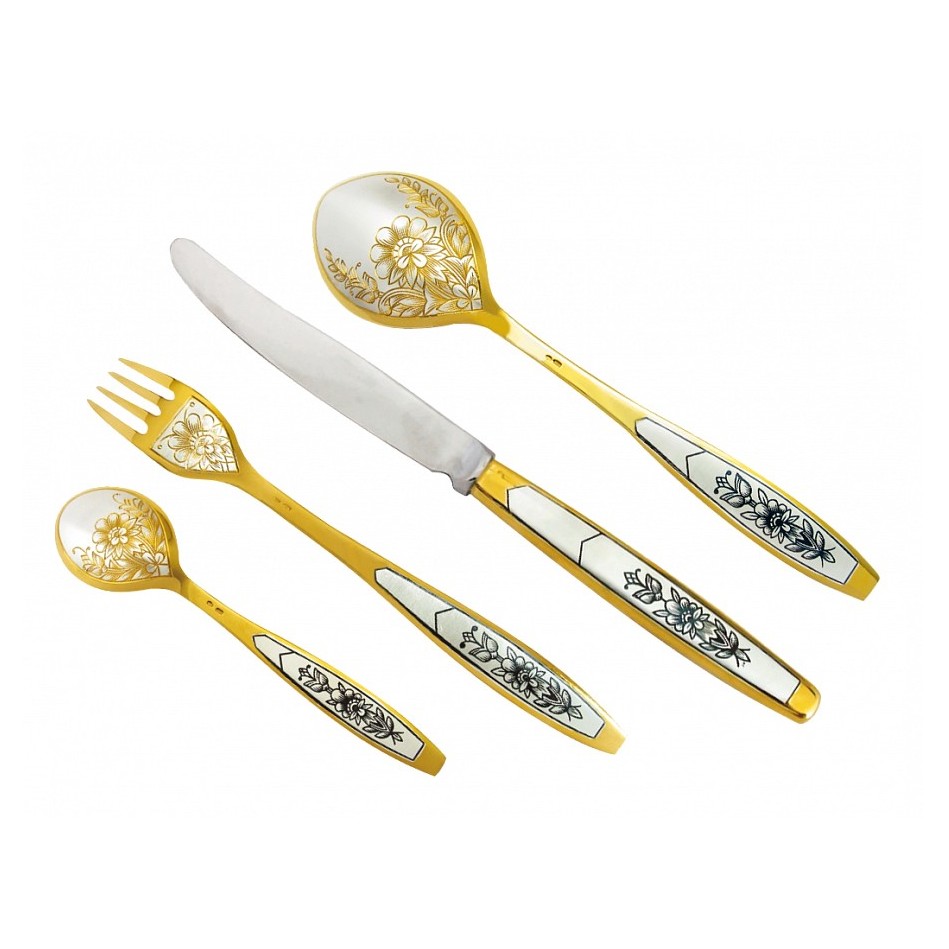 Столовый набор из серебра "Астра" с позолотой, на 1 персону