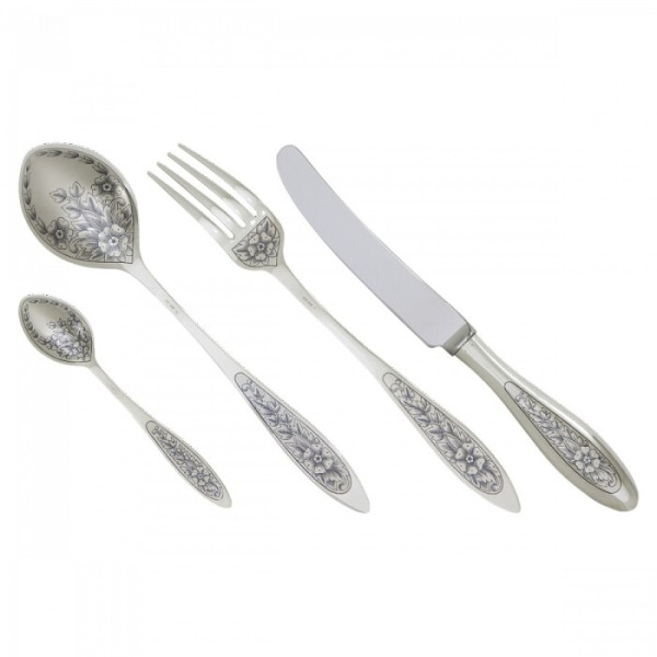 Серебряные столовые приборы изготавливаются из высококачественного серебра, которое обладает антибактериальными свойствами и придает изделиям изысканный блеск и благородство. Серебро является гипоаллергенным металлом, что делает его идеальным выбором для изготовления столовых приборов.
