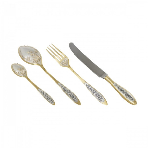 Столовый набор из серебра "Гармония" с позолотой, на 1 персону