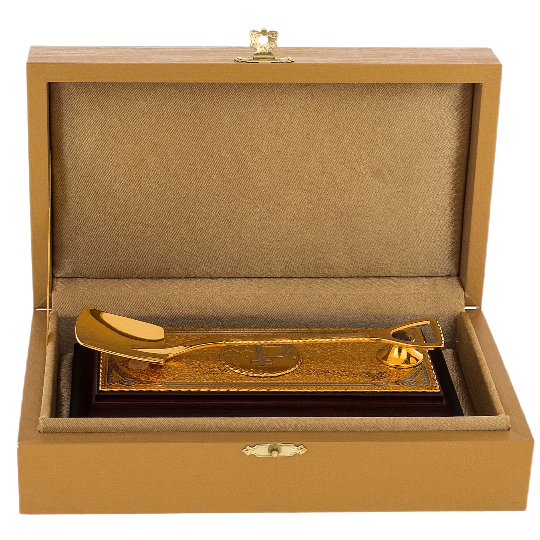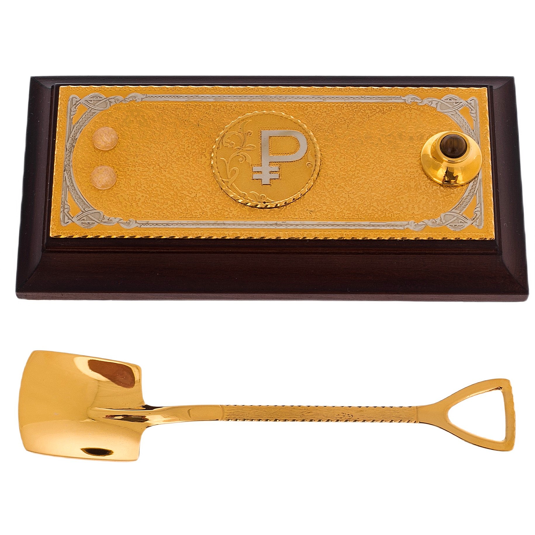 Сувенир "Денежная лопата" на подставке с камнем, Златоуст