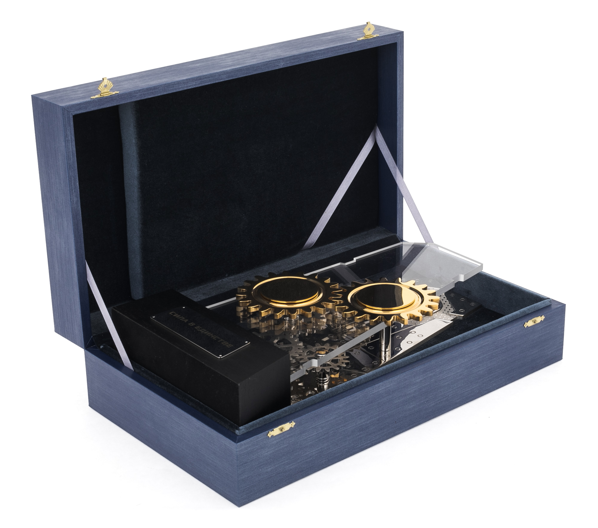 Материалы:латунь, прозрачный акрил, основание - шпон дерева.