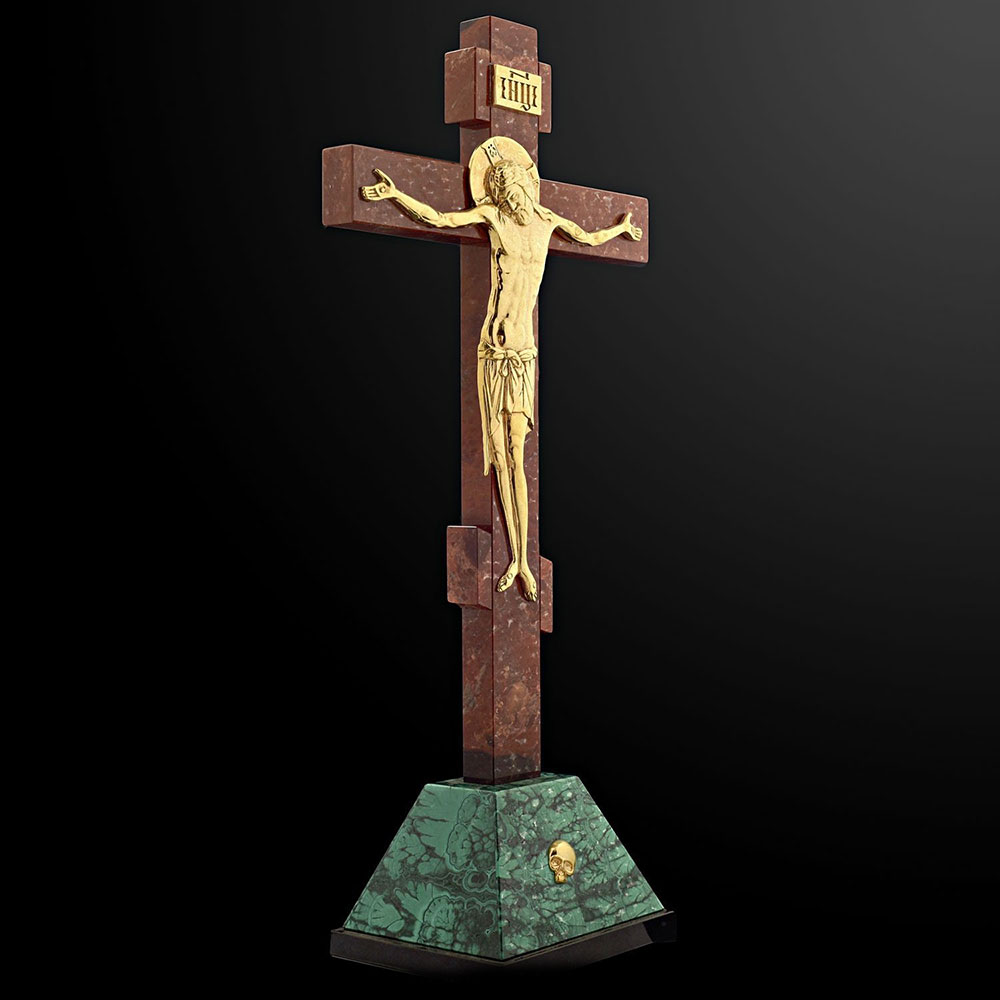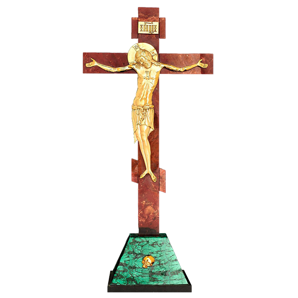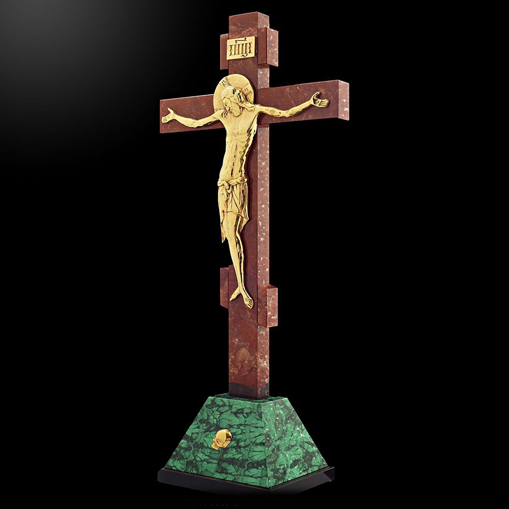 Настольный крест из малахита и яшмы "Распятие" малый