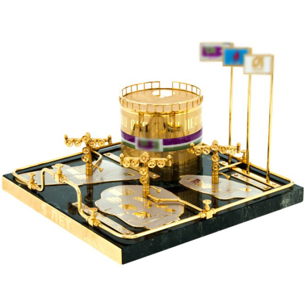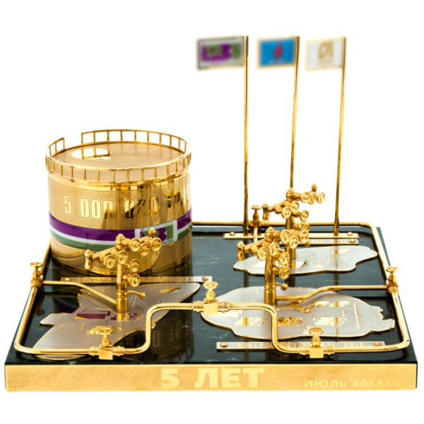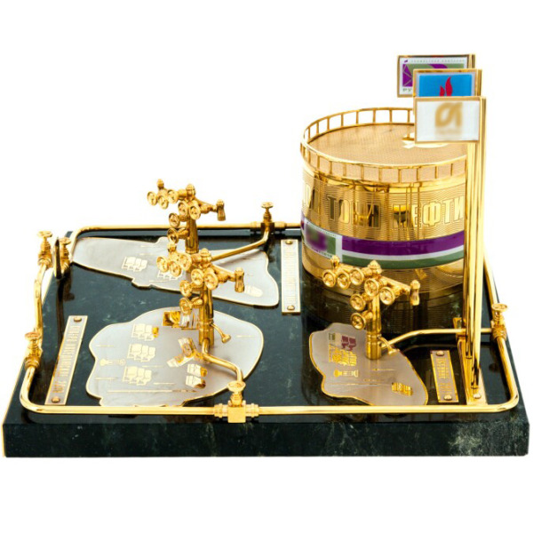 Сувенир "Фонтан нефти" ЗлатоустСувенир "Фонтан нефти" ЗлатоустСтатуэтки из Златоуста порадуют вас изяществом и великолепным качеством. Роскошные сувенирные изделия изготовлены вручную с использованием старинной техники Златоустовской гравюры, которая включает в себя уникальные художественные приемы - травление, гравирование, ручную подрезку, никелирование, серебрение и золочение. При изготовлении используются эксклюзивные материалы, а на каждом изделии можно увидеть фирменный знак Златоуста.