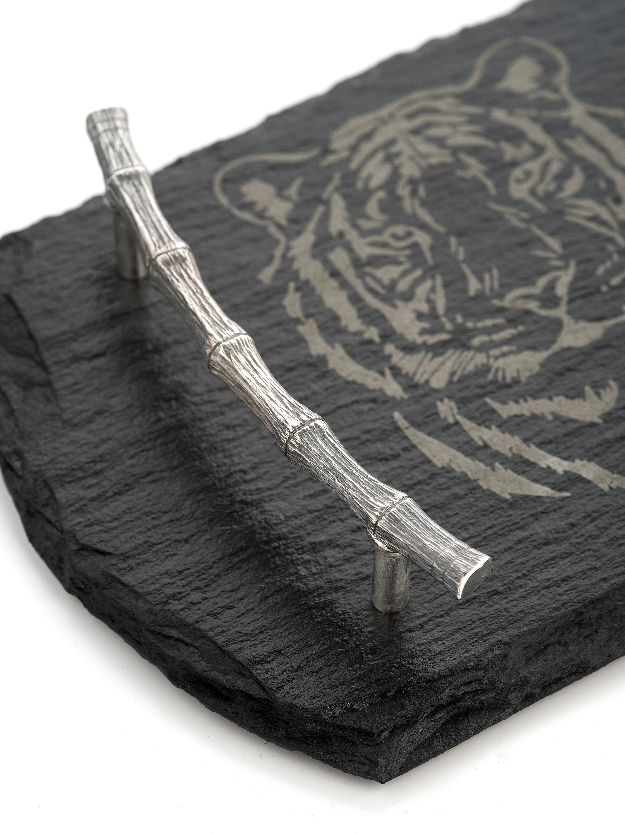 Разделочная доска из сланца "Амурский тигр" с серебром