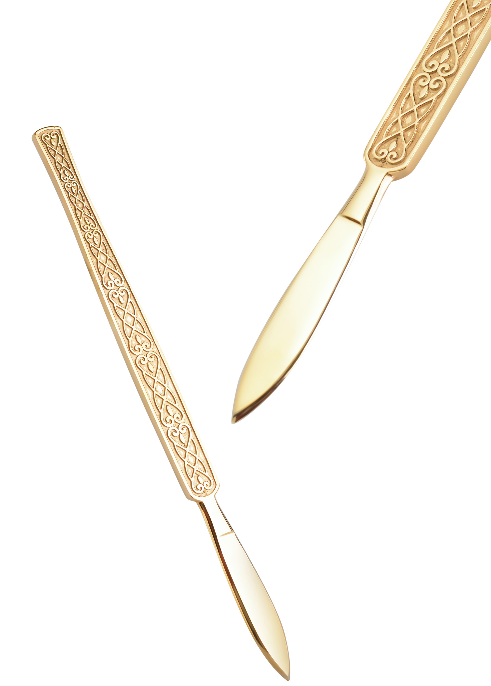 Скальпель сувенирный из серебра "Золотые руки" с позолотой