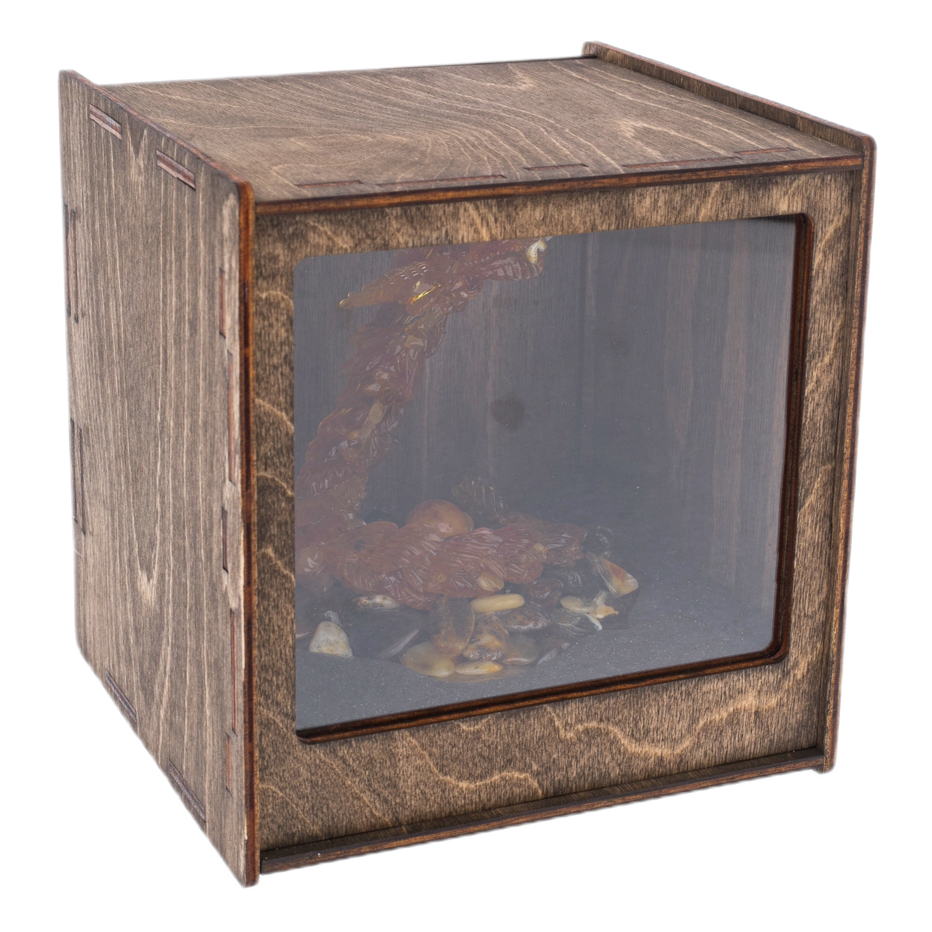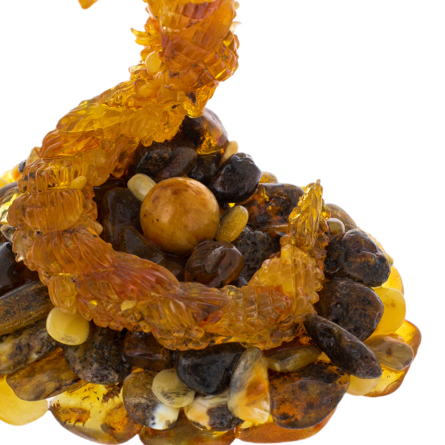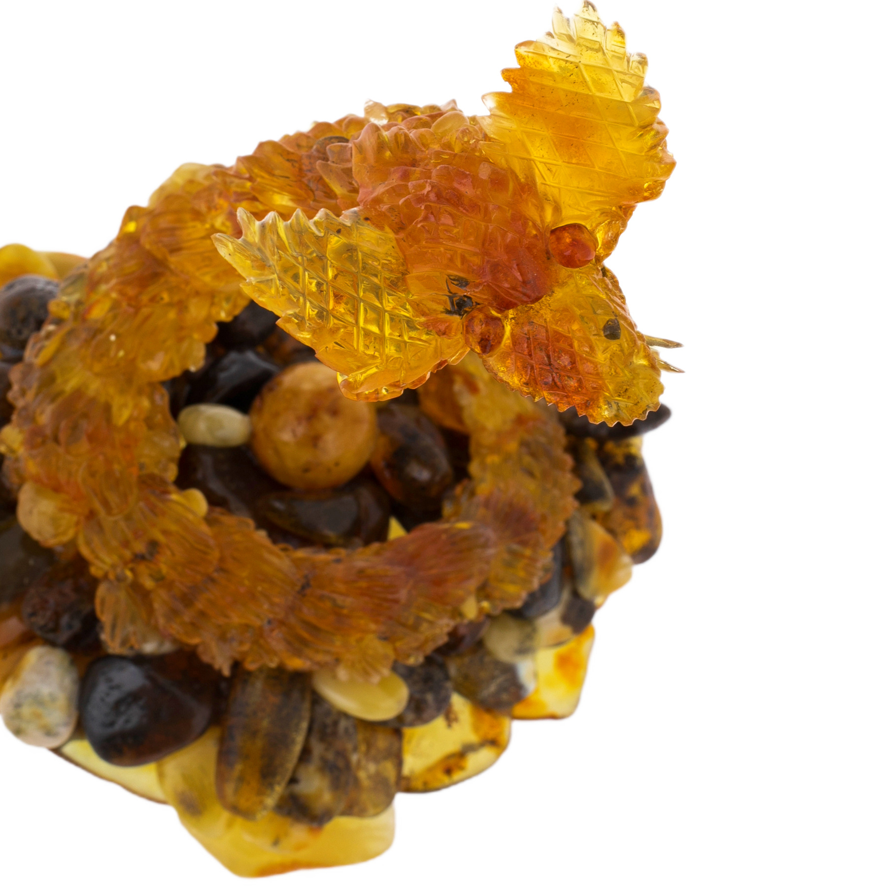 Янтарь, из которого создано это произведение — не просто материал, а сама история, воплощенная в камне. Он вобрал в себя дыхание первозданных лесов, энергию солнца, огонь жизни. Каждый фрагмент, каждый завиток — это отражение природного совершенства, собранного в единую композицию, в которой органично сочетаются хаос и порядок, угроза и защита, мудрость и сила.