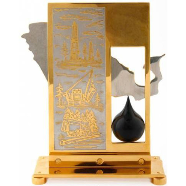 Сувенир "Фонтан нефти" ЗлатоустСувенир "Фонтан нефти" ЗлатоустСтатуэтки из Златоуста порадуют вас изяществом и великолепным качеством. Роскошные сувенирные изделия изготовлены вручную с использованием старинной техники Златоустовской гравюры, которая включает в себя уникальные художественные приемы - травление, гравирование, ручную подрезку, никелирование, серебрение и золочение. При изготовлении используются эксклюзивные материалы, а на каждом изделии можно увидеть фирменный знак Златоуста.