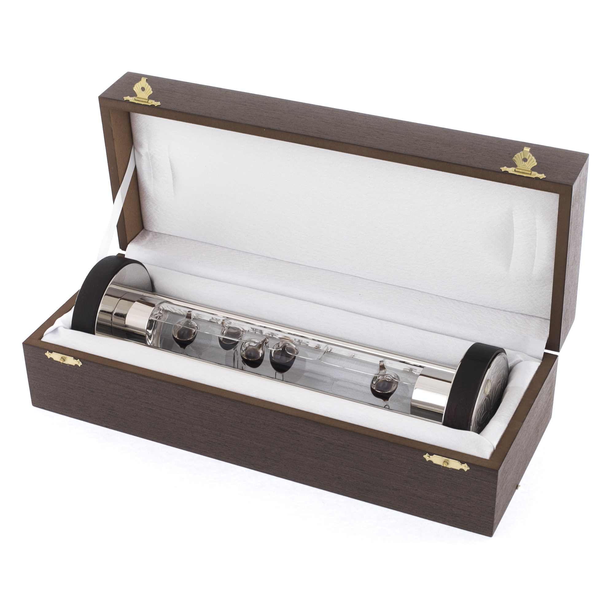 Упаковка:деревянная — шпон венге, внутри — отделка белым атласом.