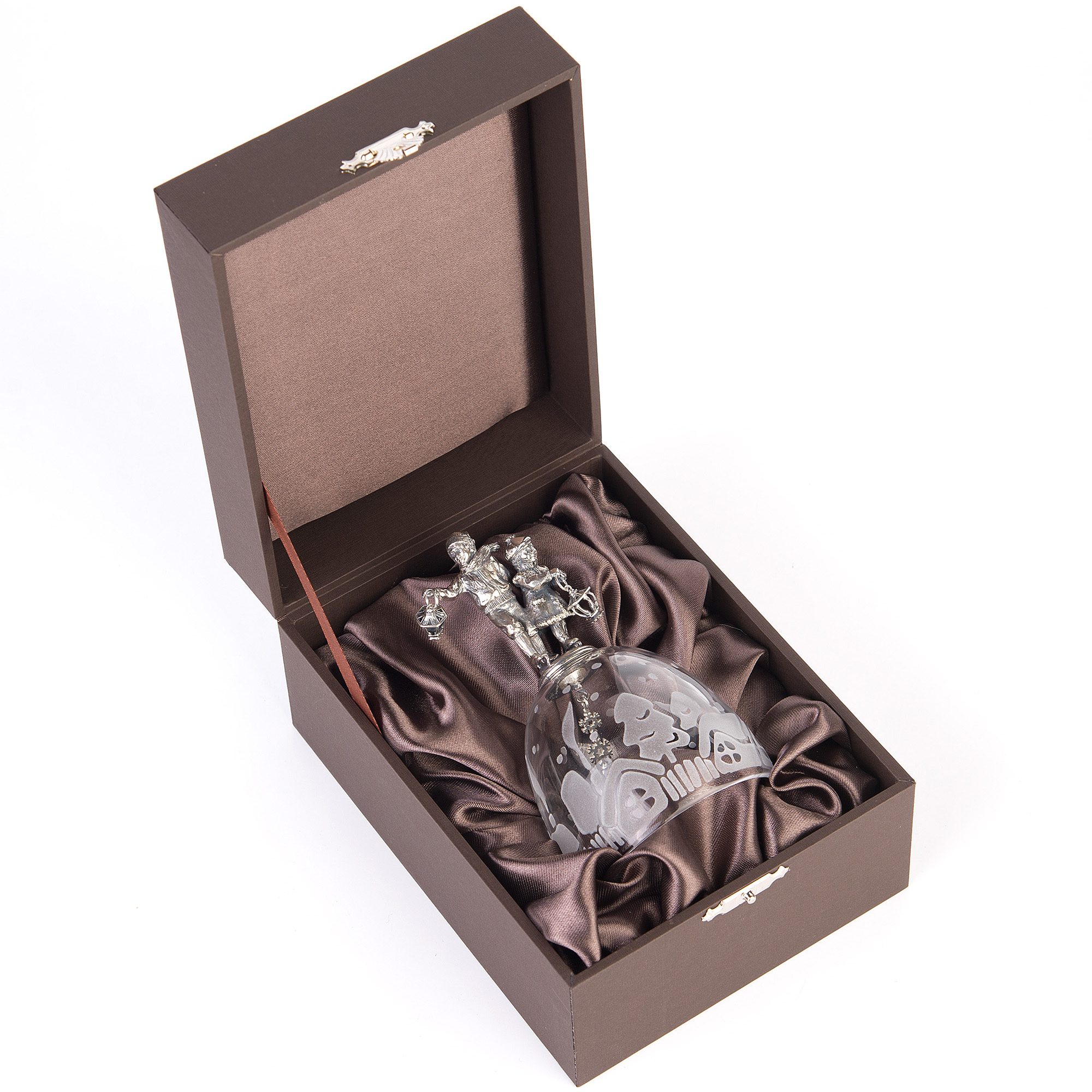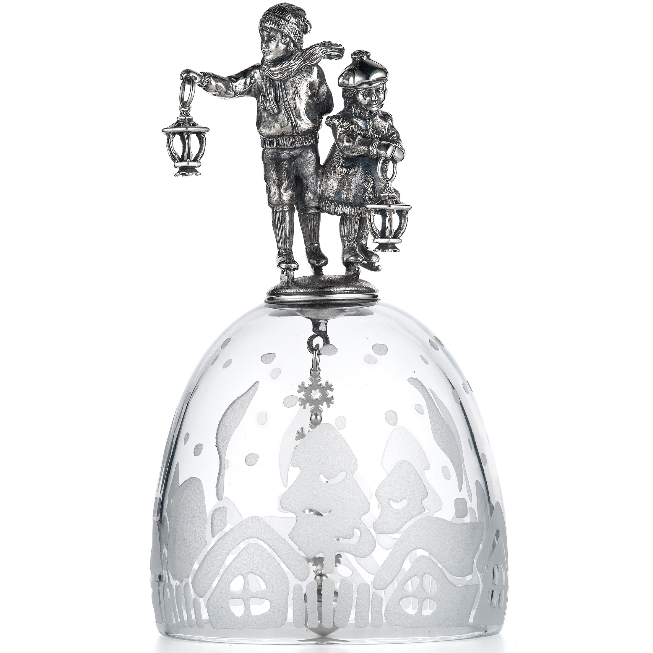 Колокольчик хрустальный "Дети на коньках" с серебром