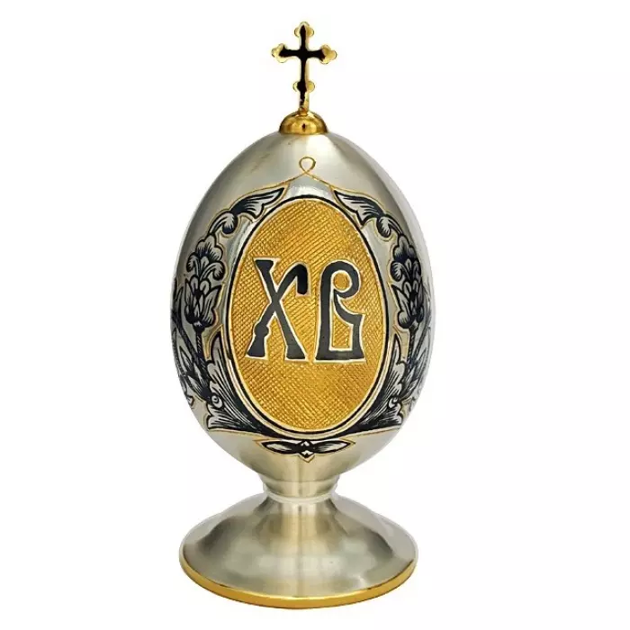 Яйцо пасхальное из серебра 925 пробы изготовлено мастерами великоустюгского завода «Северная чернь». Сплавы, содержащиеся в пробе, придают изделию прочность и защиту от механических повреждений.