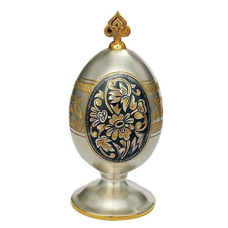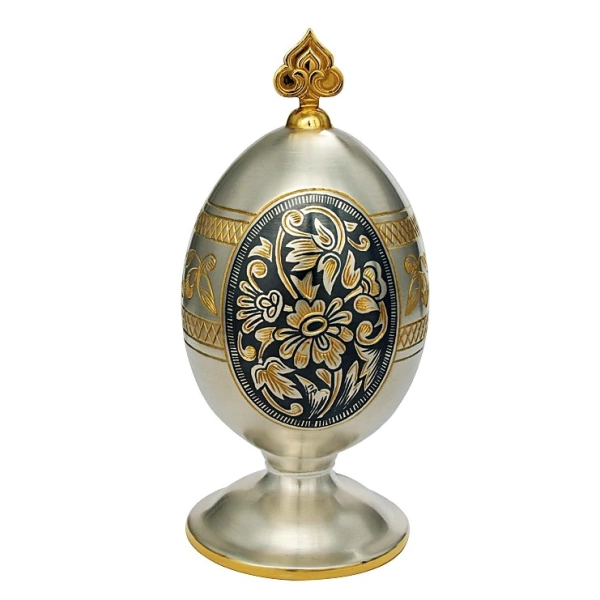 Яйцо пасхальное из серебра 925 пробы изготовлено мастерами великоустюгского завода «Северная чернь». Сплавы, содержащиеся в пробе, придают изделию прочность и защиту от механических повреждений.