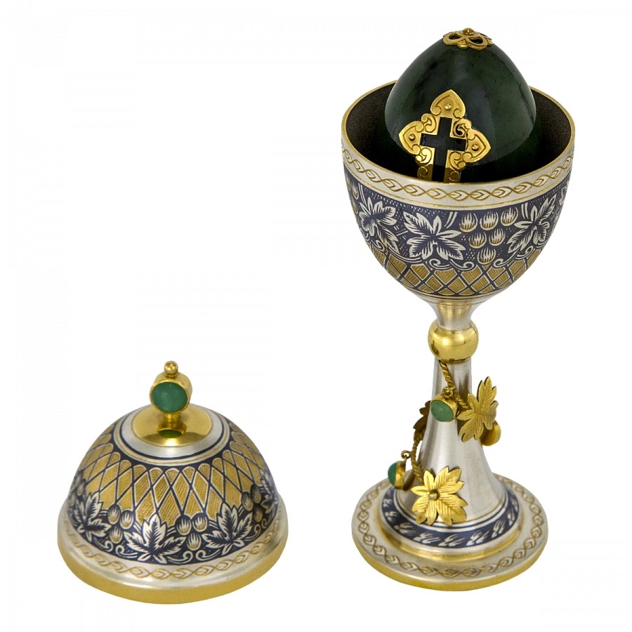 Яйцо подарочное из серебра 925 пробы изготовлено мастерами великоустюгского завода «Северная чернь». Сплавы, содержащиеся в пробе, придают изделию прочность и защиту от механических повреждений.