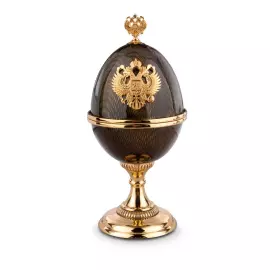 Форма яйца традиционно ассоциируется с идеей сохранённой внутри ценности, а государственная символика придаёт предмету дополнительное смысловое измерение, связанное с традициями, преемственностью и статусом. Внутреннее пространство предназначено для хранения украшений или памятных предметов, превращая шкатулку в личный и значимый объект. Такой предмет органично вписывается в кабинет, представительский интерьер или коллекцию, выступая выразительным акцентом, отражающим вкус и уважение к символам.