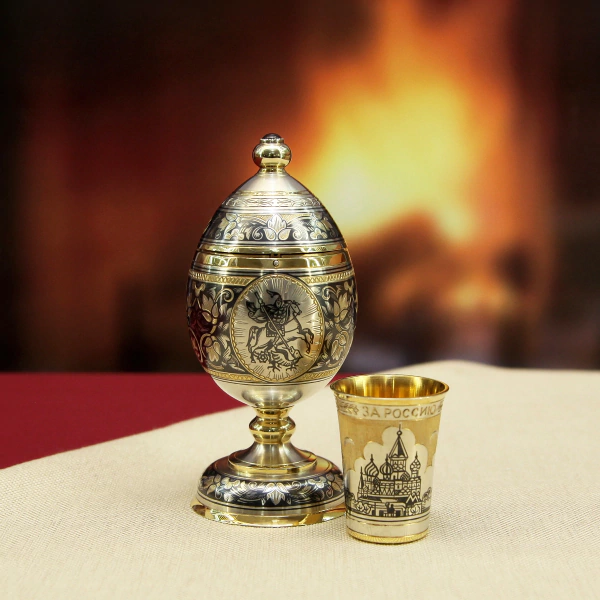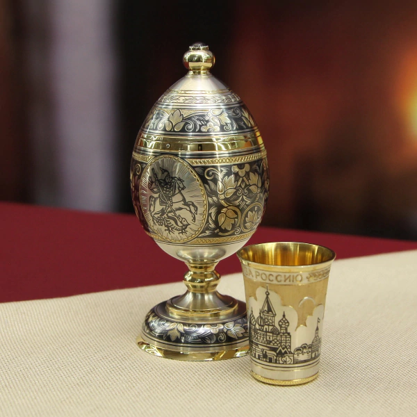 Яйцо подарочное из серебра 925 пробы изготовлено мастерами великоустюгского завода «Северная чернь». Сплавы, содержащиеся в пробе, придают изделию прочность и защиту от механических повреждений.