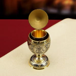 Русские самоцветы Яйцо-шкатулка "Цветы" Яйцо-шкатулка "Цветы" Ювелирная шкатулка в форме декоративного яйца — образец высокого прикладного искусства, вобравший в себя эстетику Востока и торжественность императорского стиля. Корпус изделия покрыт сложной эмалью ярко-бирюзового оттенка, вручную украшенной рельефным многоцветным флоральным орнаментом. Цветы — от сияющих золотисто-жёлтых до нежно-розовых бутонов — будто оживают на поверхности, создавая иллюзию бесконечного сада. Каждое лепестковое очертание выполнено с филигранной точностью, подчёркнуто тонкими позолоченными линиями и обрамлено витой золотой лентой. Все элементы декора словно вышиты по эмали, создавая сложную многоуровневую композицию, в которой нет ни одной случайной детали. Нижняя часть яйца отделана изящной сеткой из позолоченного металла, имитирующей тончайшее плетение в технике филиграни. Этот декоративный приём придаёт визуальную лёгкость объёму и подчёркивает архитектурную строгость формы. Изделие покоится на ажурной трёхлучевой подставке с ножками в виде изогнутых завитков, напоминающих грифоны в старинных орнаментах. Витиеватость силуэта уравновешивается симметрией и точной геометрией основания, что создаёт ощущение драгоценного артефакта, созданного не столько для практического использования, сколько для эстетического созерцания. Такая шкатулка предназначена для тех, кто собирает не просто предметы, а символы культурного богатства и личной утончённости. Она гармонично впишется в интерьер, где ценится ручной труд, яркая декоративность и уважение к традициям. Это не просто подарок — это заявление о вкусе, о стремлении к прекрасному и о понимании искусства как части повседневной жизни. Шкатулка может хранить украшения, драгоценные мелочи, или же оставаться пустой, как законченный экспонат — самодостаточный и выразительный.