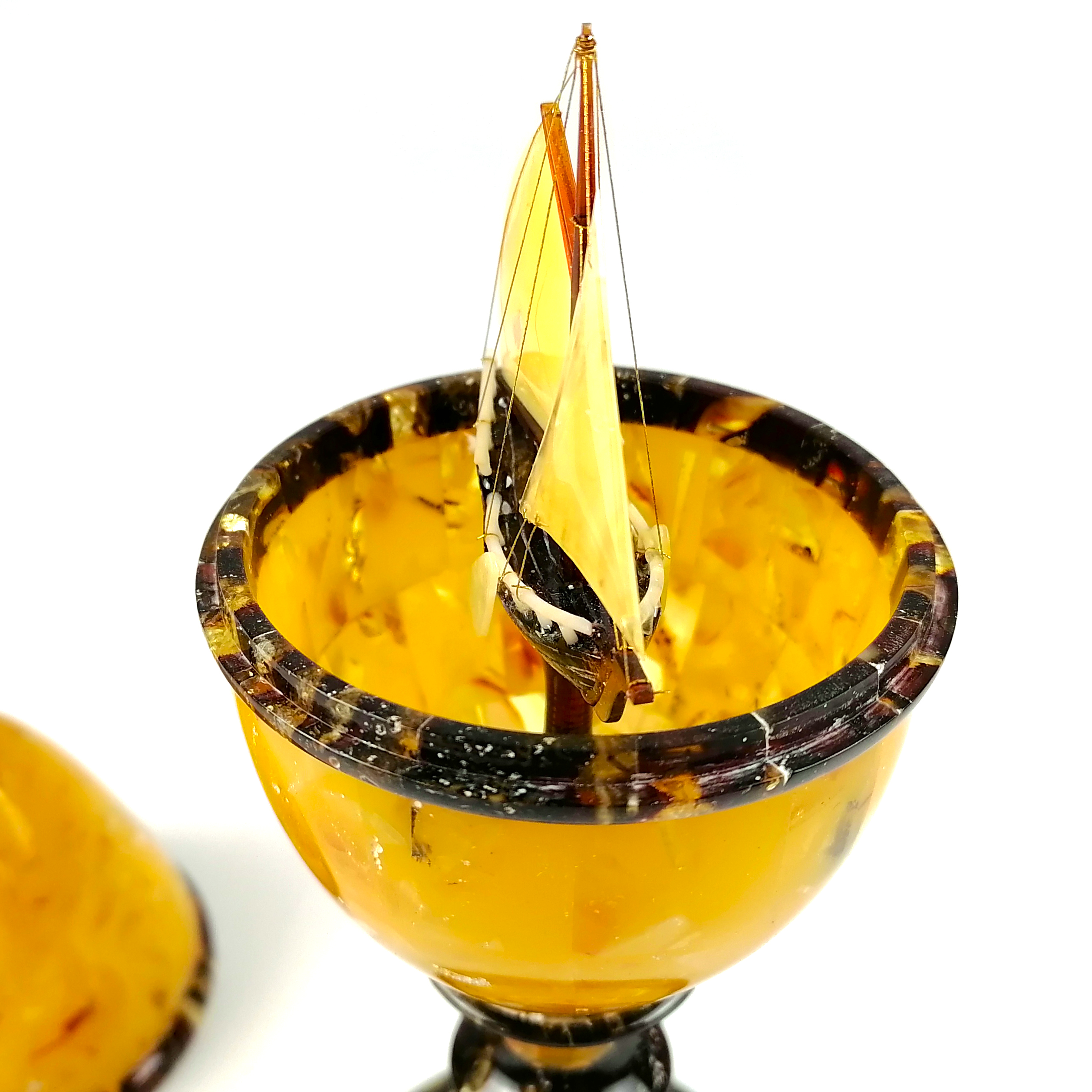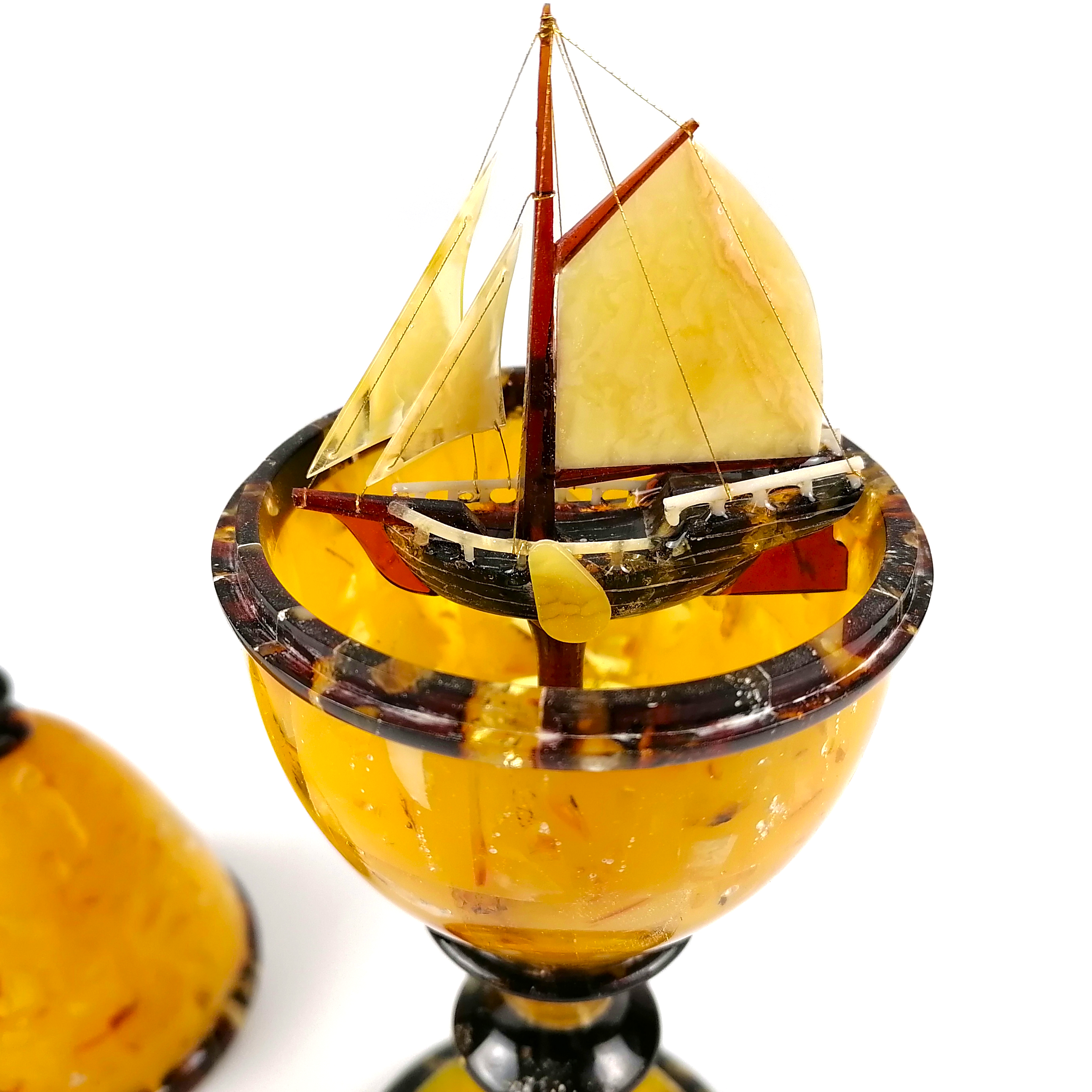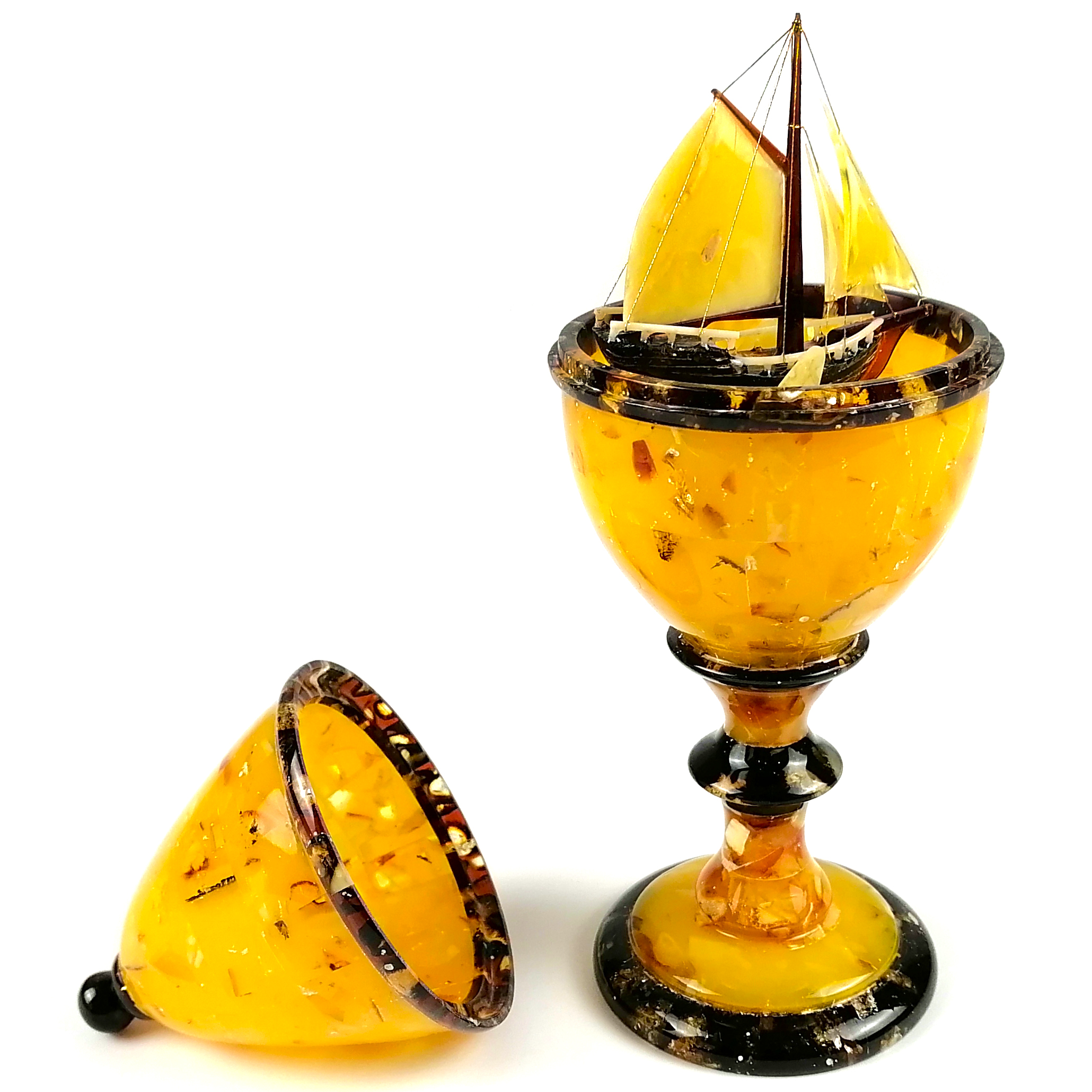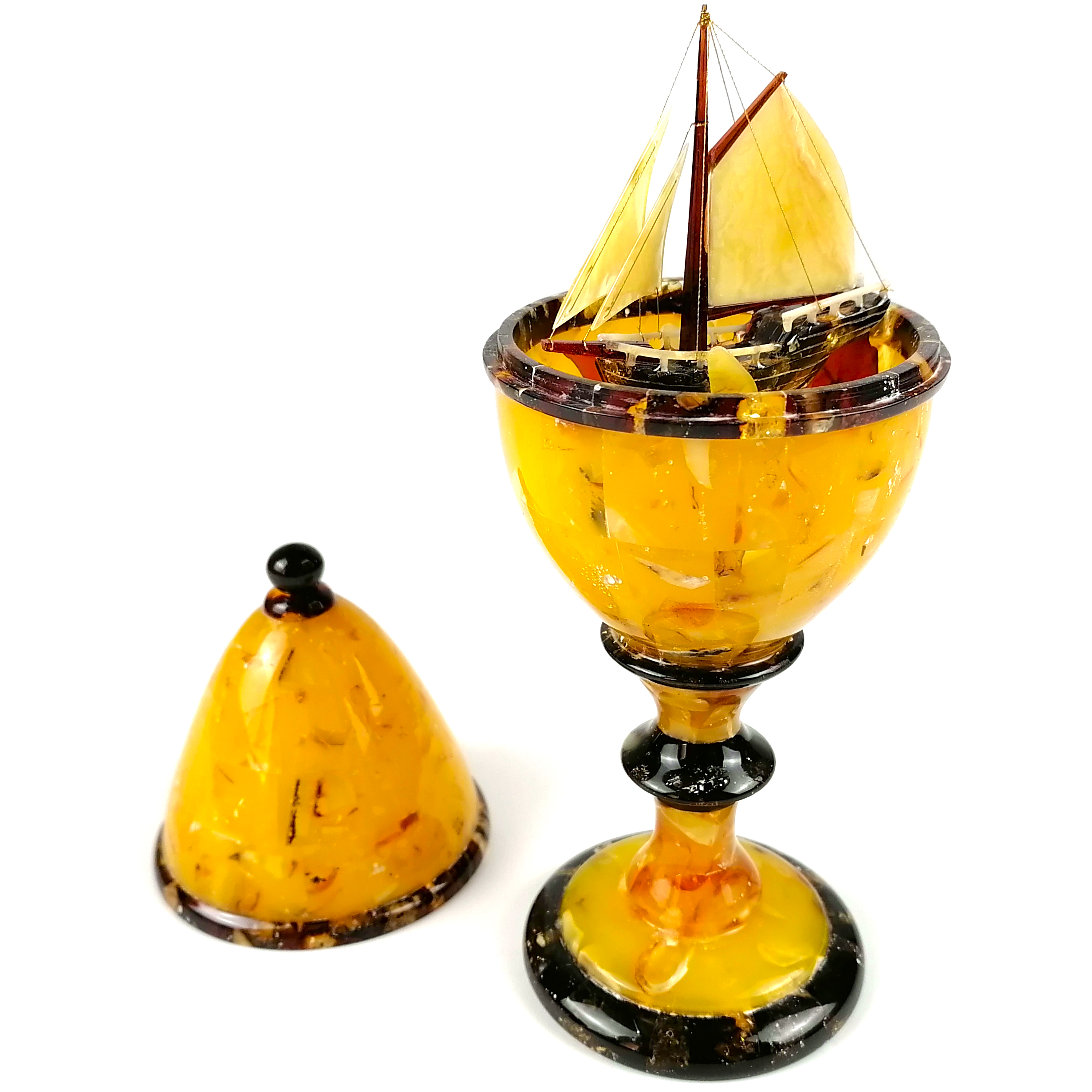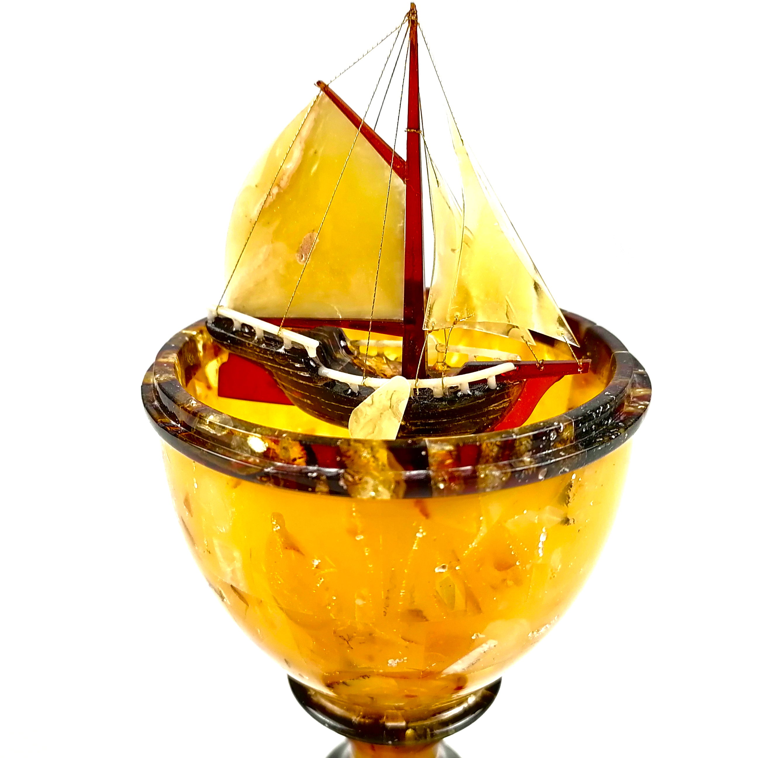 Сувенирное яйцо из янтаря "Ботик Петра I"