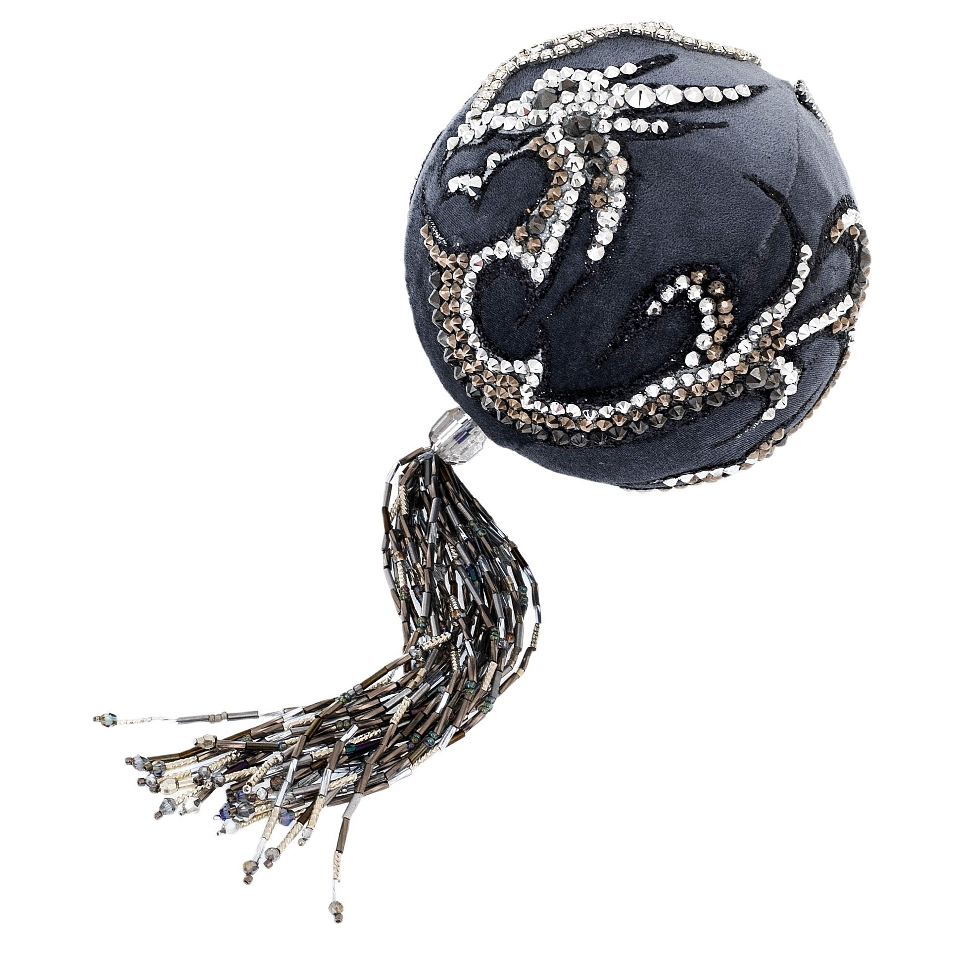 Елочный шар с кистью "Дракон", серый с серебром