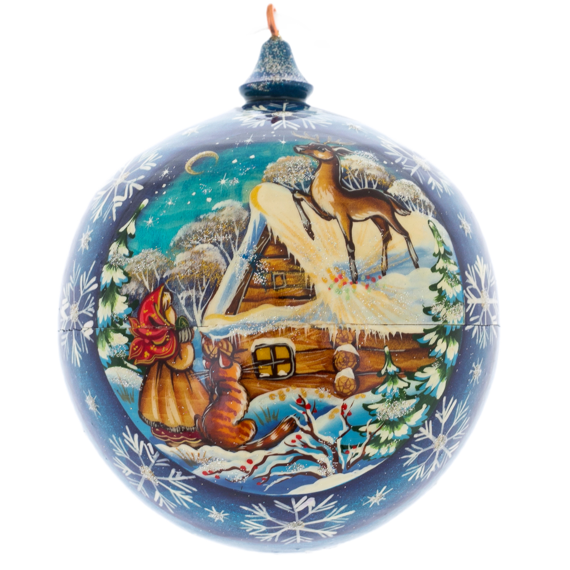 Каждая деталь его росписи, выполненной в лучших традициях русского декоративного искусства, дышит радостью и торжеством. Яркие краски, изящные орнаменты, волшебные узоры превращают этот шар в настоящее произведение искусства, пробуждая в душе воспоминания о тёплых вечерах у камина и ожидании зимнего чуда. Это не просто украшение для ёлки — это артефакт, хранящий в себе уют и сказку, которые всегда будут сопровождать его обладателя.