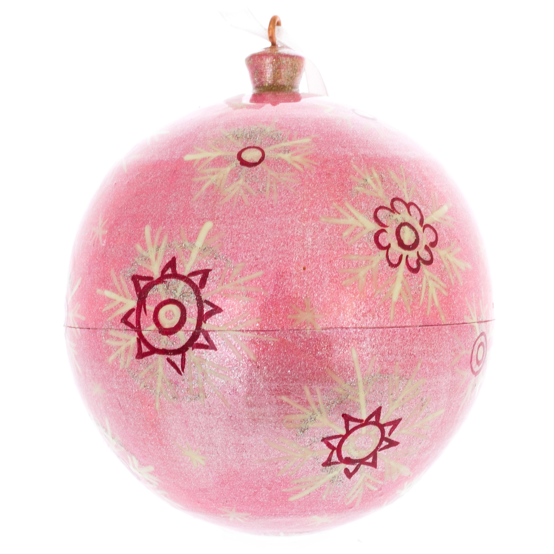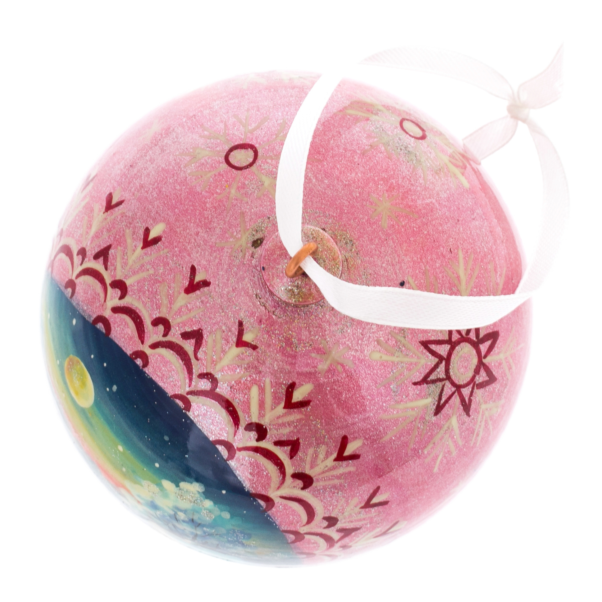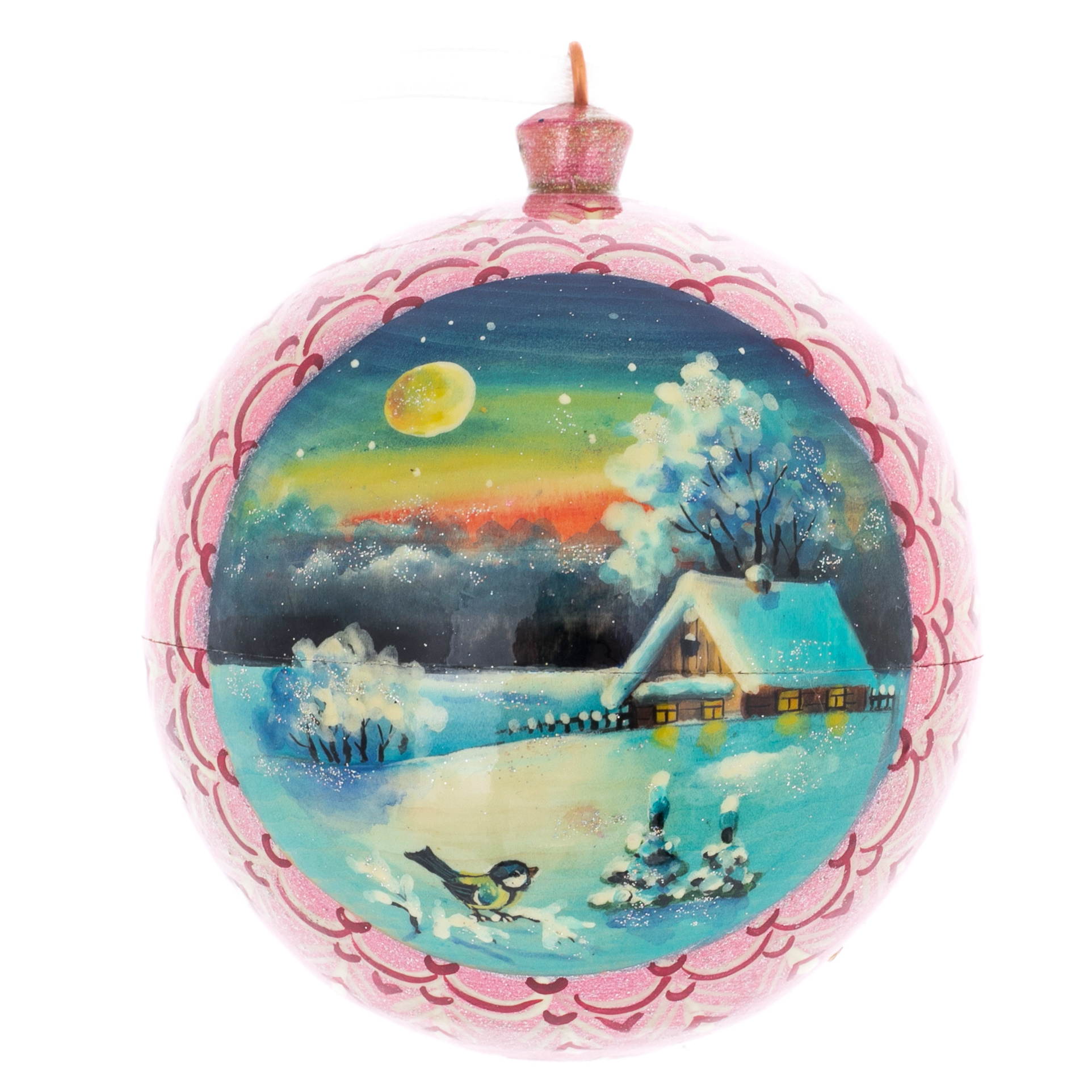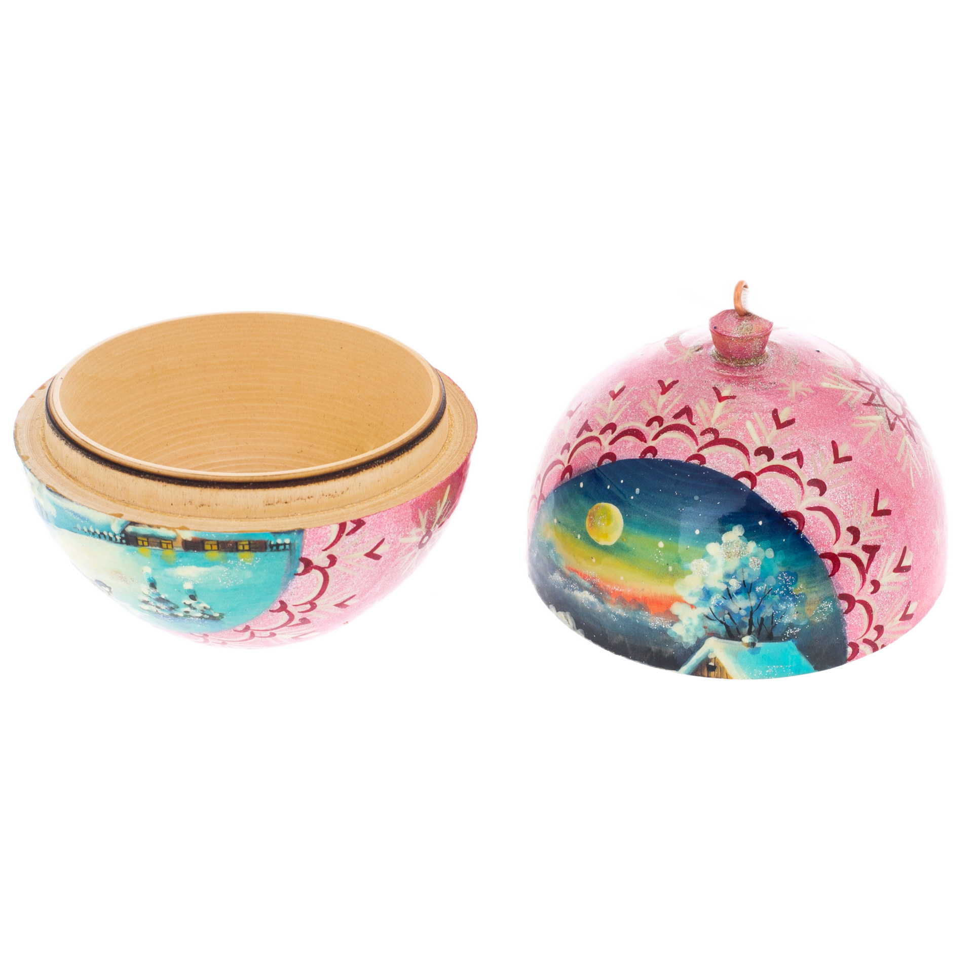 Ёлочный шар-шкатулка "Синица в зимнюю ночь" светло-розовый