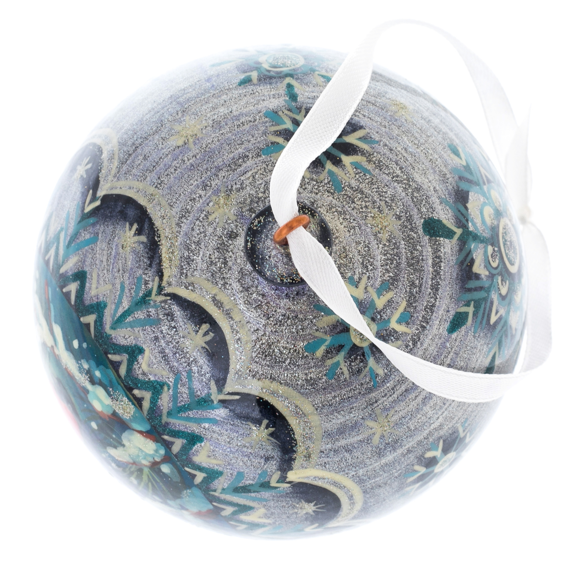 Каждая деталь его росписи, выполненной в лучших традициях русского декоративного искусства, дышит радостью и торжеством. Яркие краски, изящные орнаменты, волшебные узоры превращают этот шар в настоящее произведение искусства, пробуждая в душе воспоминания о тёплых вечерах у камина и ожидании зимнего чуда. Это не просто украшение для ёлки — это артефакт, хранящий в себе уют и сказку, которые всегда будут сопровождать его обладателя.