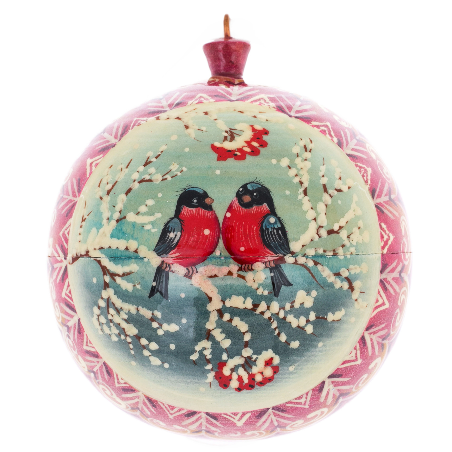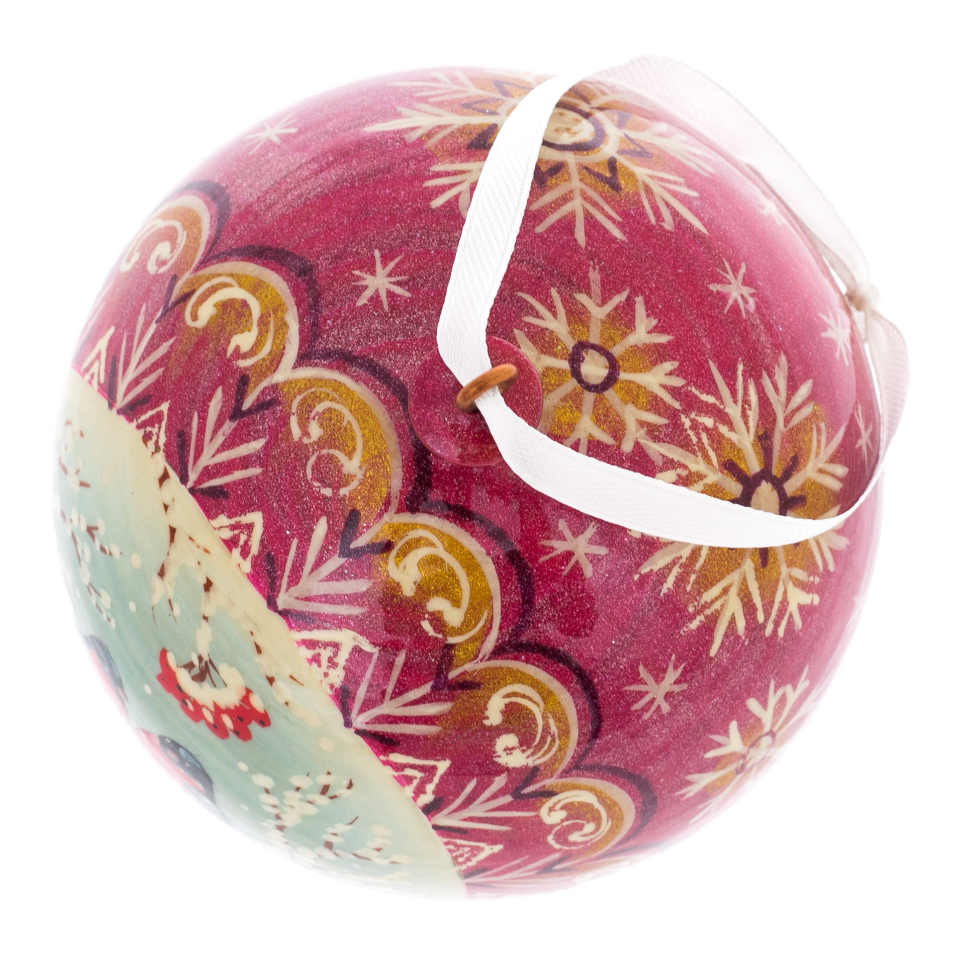 Каждая деталь его росписи, выполненной в лучших традициях русского декоративного искусства, дышит радостью и торжеством. Яркие краски, изящные орнаменты, волшебные узоры превращают этот шар в настоящее произведение искусства, пробуждая в душе воспоминания о тёплых вечерах у камина и ожидании зимнего чуда. Это не просто украшение для ёлки — это артефакт, хранящий в себе уют и сказку, которые всегда будут сопровождать его обладателя.