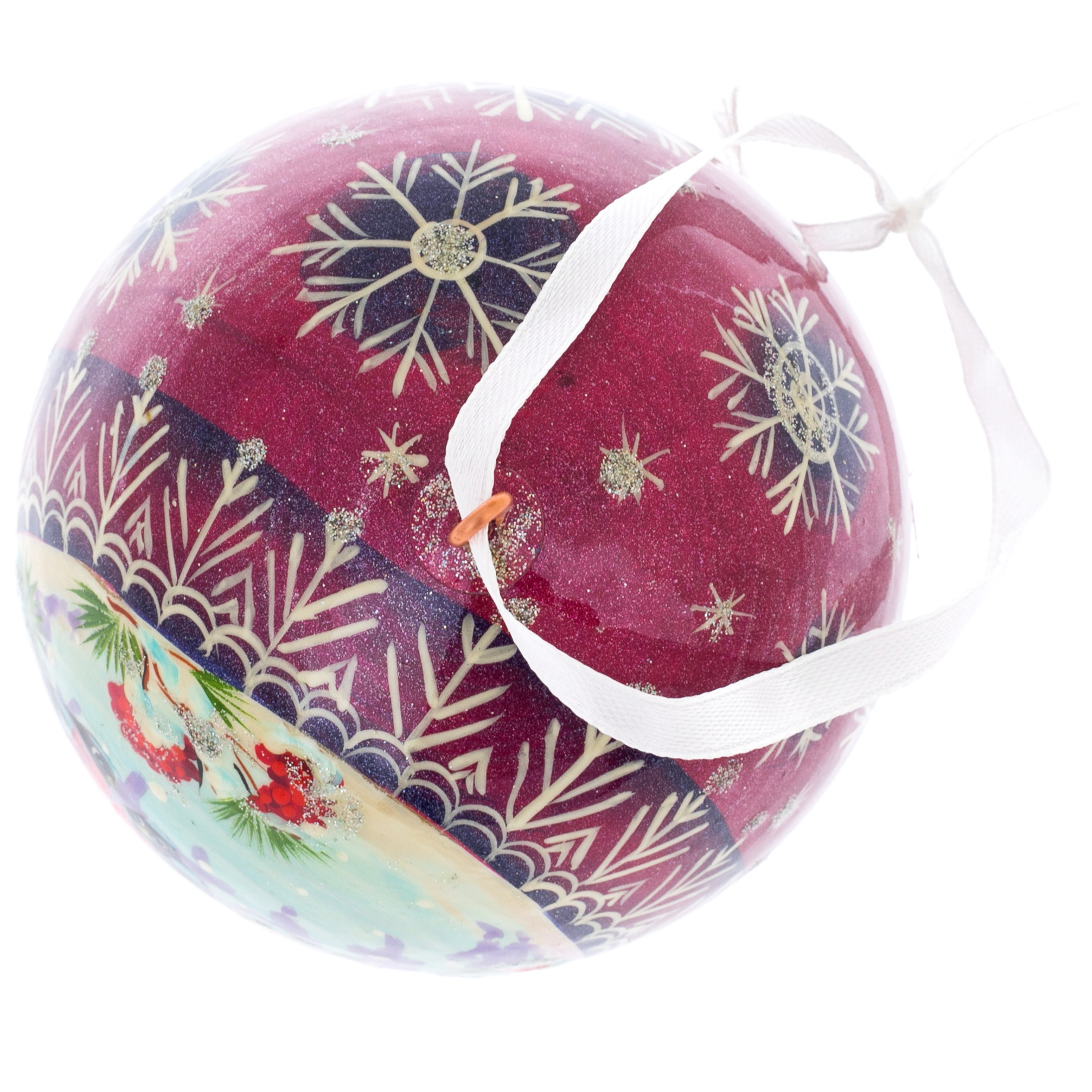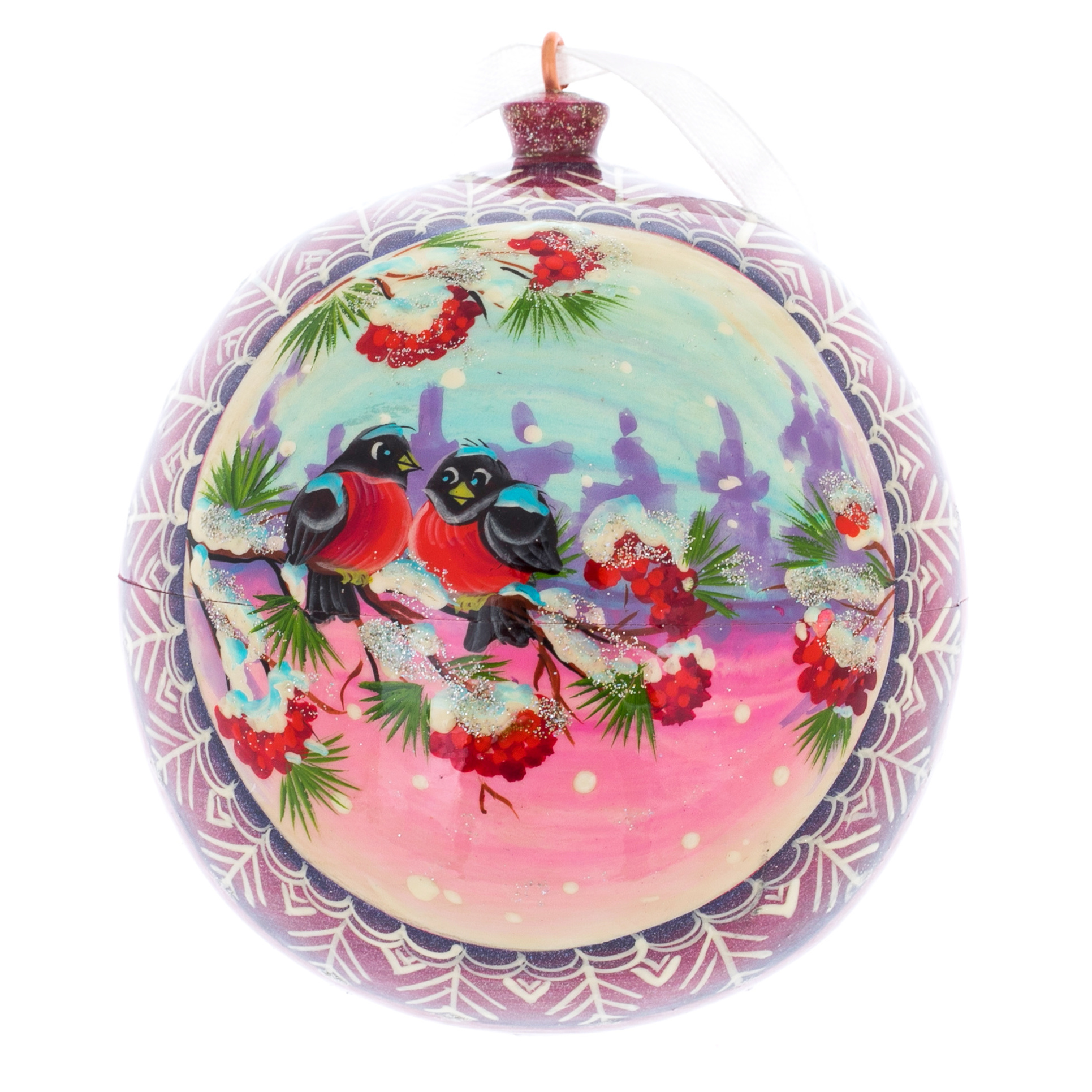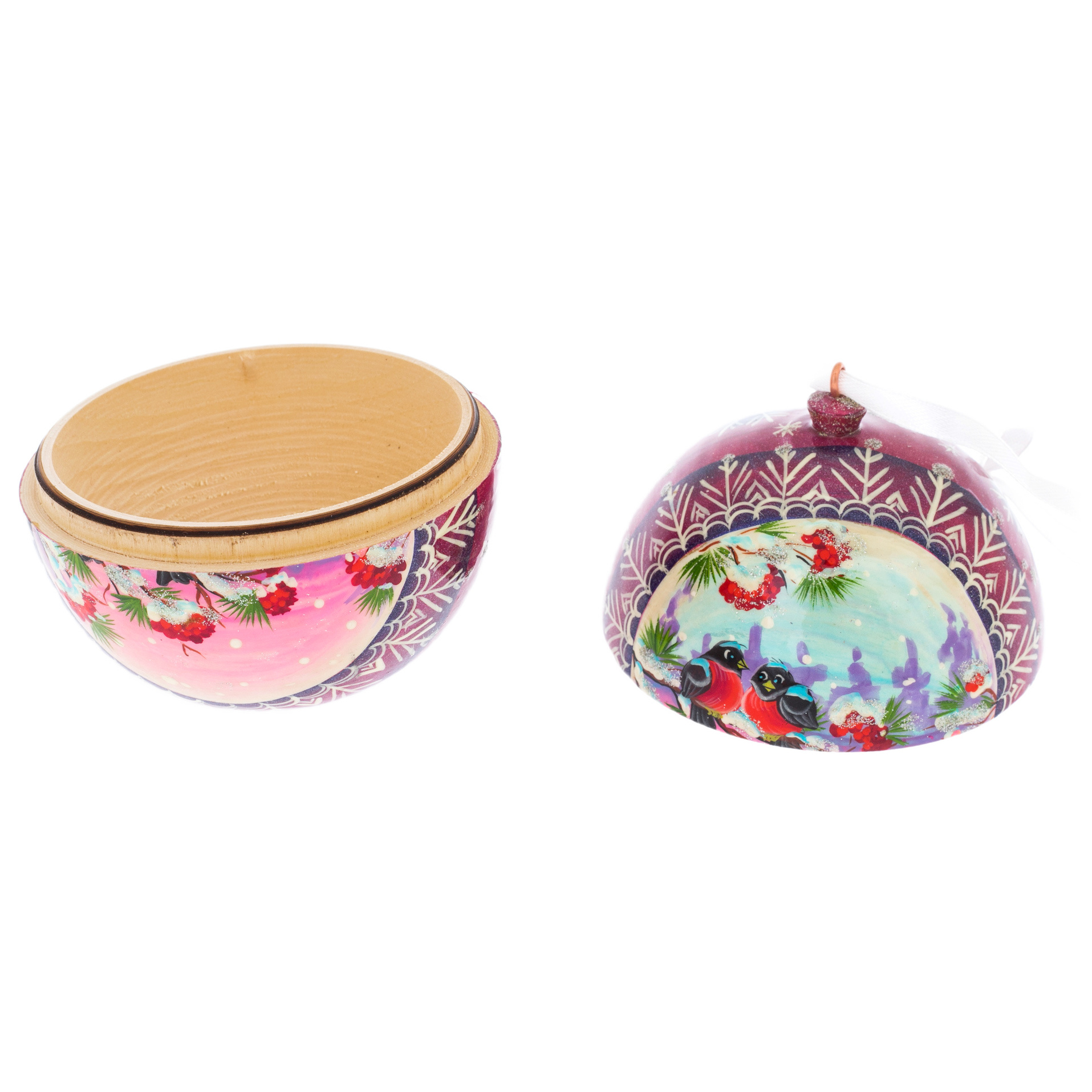 Ёлочный шар-шкатулка "Снегири на рябине" фиолетовый