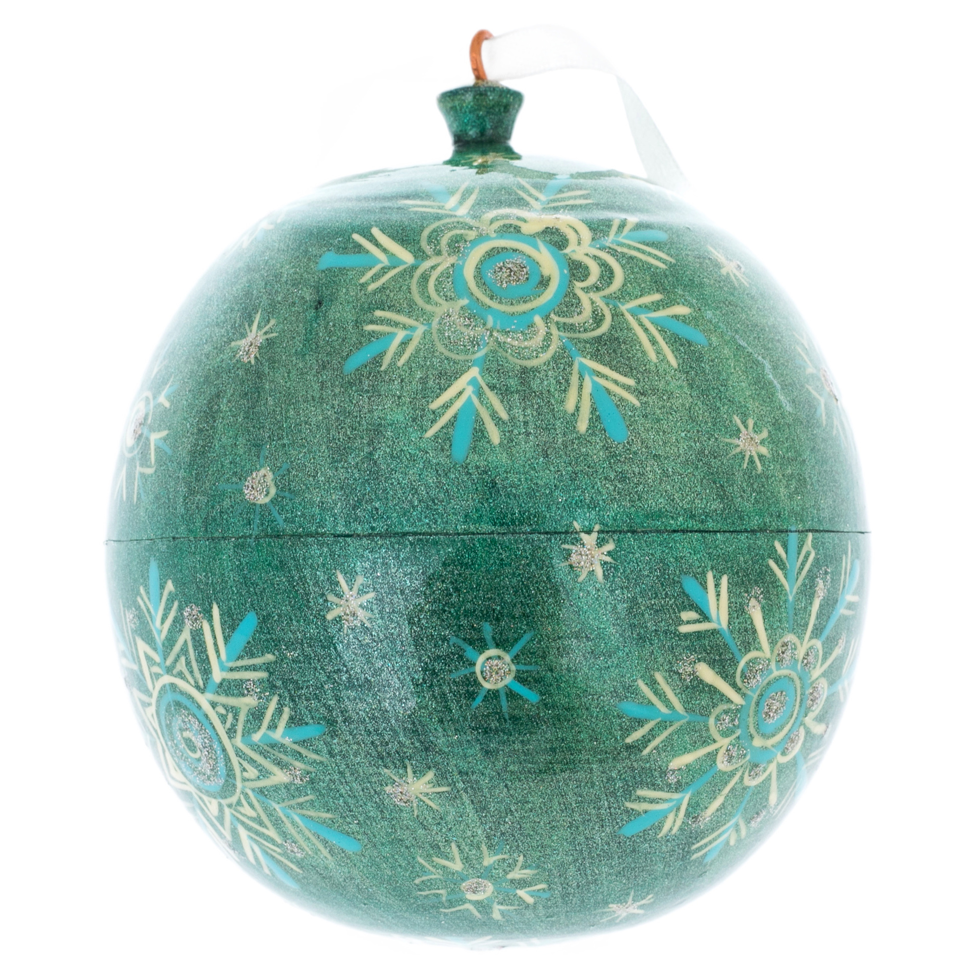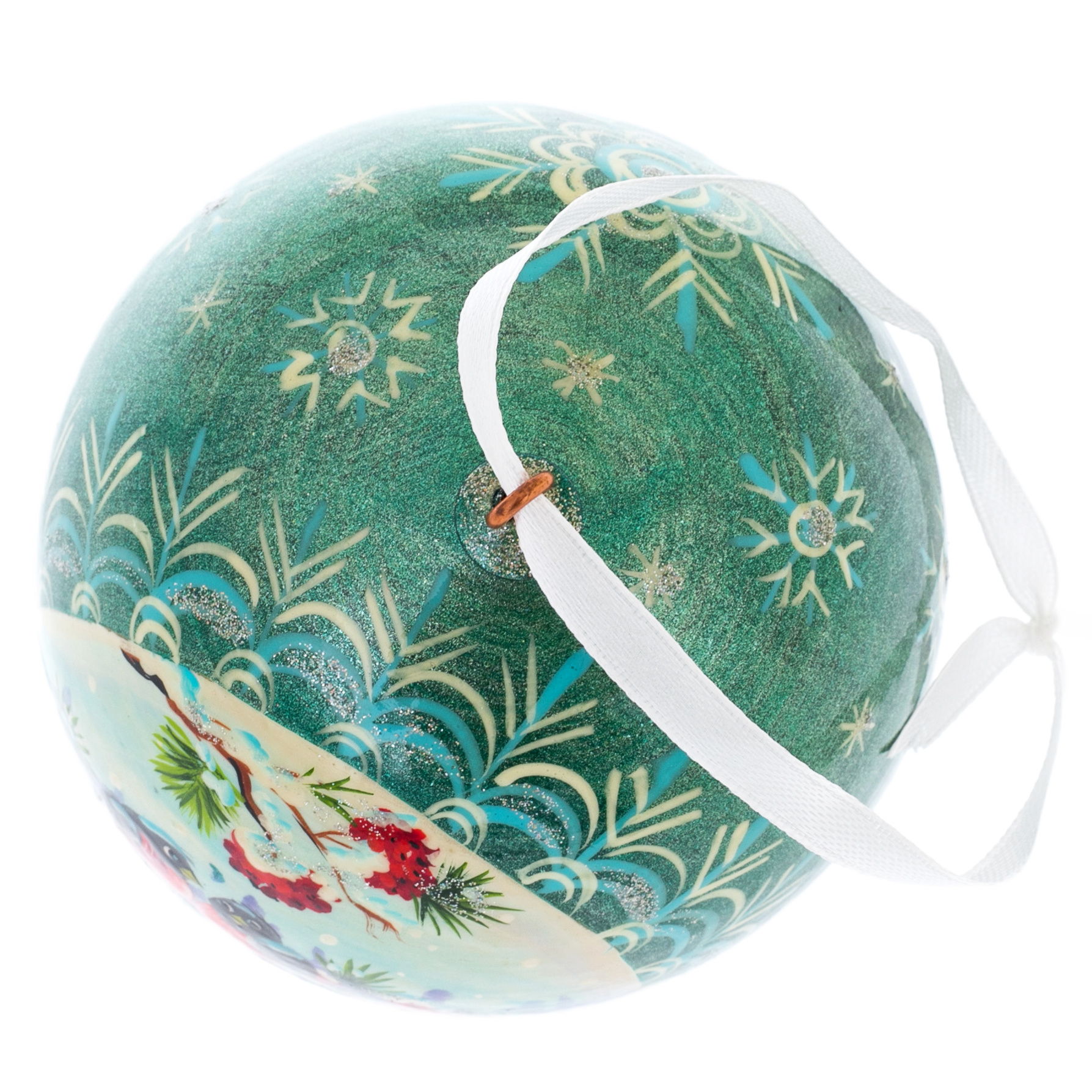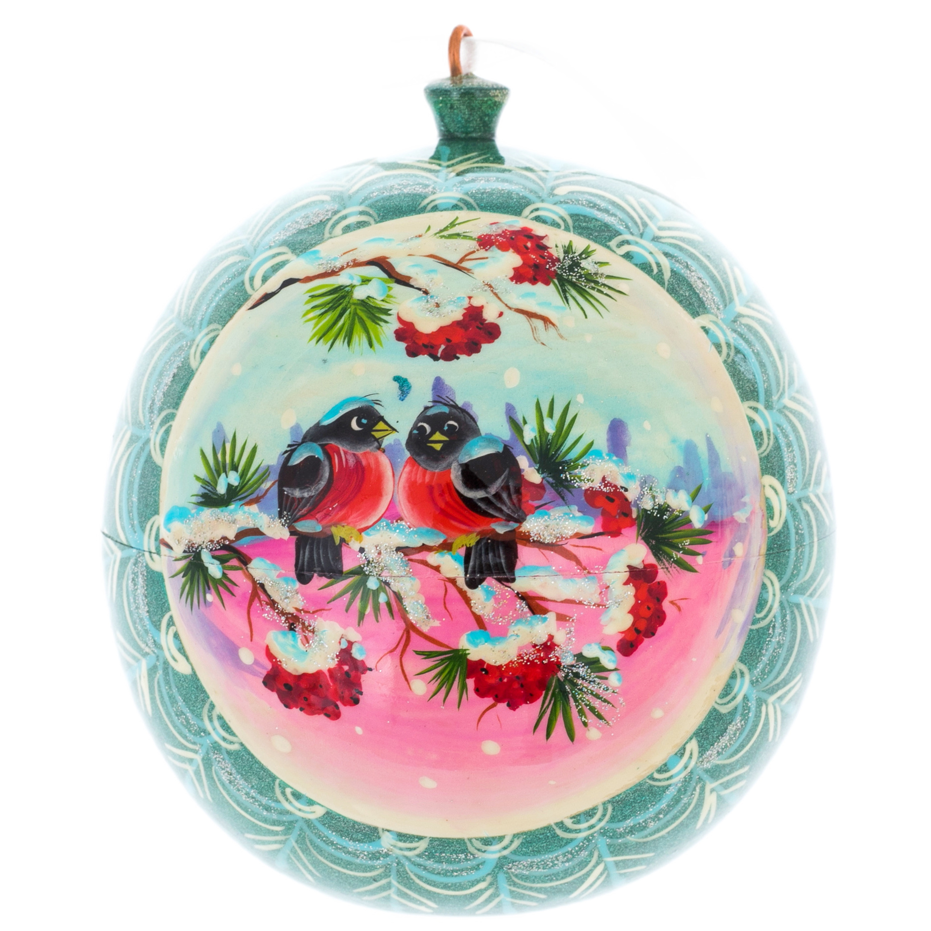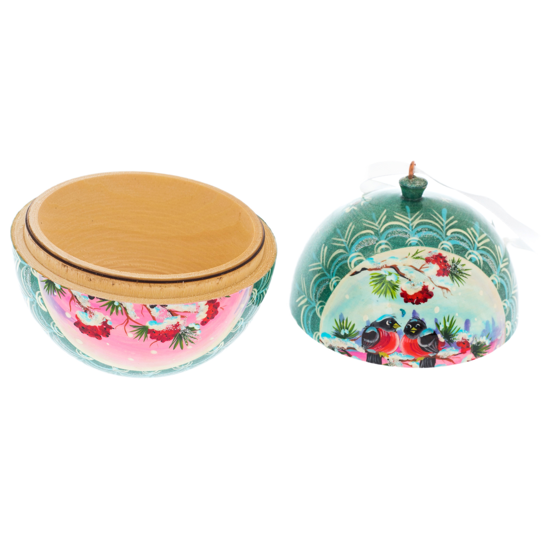Ёлочный шар-шкатулка "Снегири на рябине" зеленый